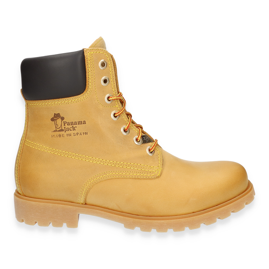 Der Panama Jack Schnürboot "PANAMA" für Herren präsentiert sich in einem eleganten Beige, das sowohl Stil als auch Funktionalität vereint. Das Obermaterial aus hochwertigem Leder verleiht dem Schuh eine robuste und zugleich edle Optik. Die sorgfältig gearbeiteten Nähte und die markante Schnürung unterstreichen das zeitlose Design, während die schwarze Polsterung am Schaft zusätzlichen Komfort bietet. Die beige Farbgebung harmoniert perfekt mit der natürlichen Lederstruktur und macht diesen Schuh zu einem vielseitigen Begleiter für verschiedene Anlässe.