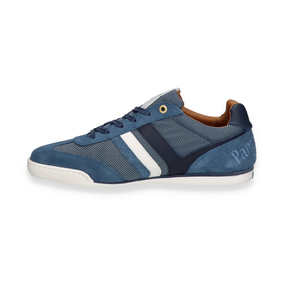 Der VASTO NYLON LOW Sneaker von Pantofola d'Oro präsentiert sich in einem eleganten dunkelblauen Design, das sowohl Stil als auch Komfort für Herren vereint. Die Kombination aus hochwertigem Leder und Textil im Obermaterial verleiht dem Schuh eine moderne und zugleich klassische Optik. Die subtile Markenprägung und die kontrastierenden Streifen an der Seite unterstreichen das italienische Erbe und die Handwerkskunst der Marke. Mit einer dezenten Absatzhöhe von 1,5 cm bietet dieser Sneaker eine perfekte Balance zwischen lässigem und schickem Look.