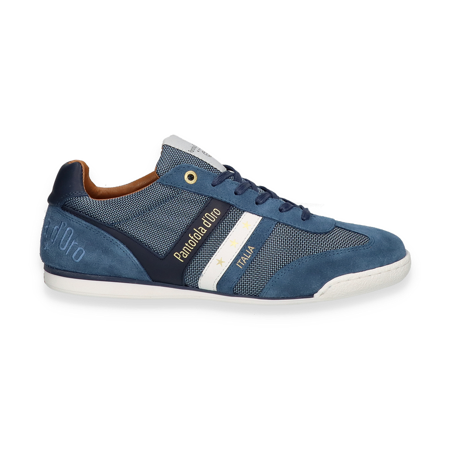 Der VASTO NYLON LOW Sneaker von Pantofola d'Oro präsentiert sich in einem eleganten dunkelblauen Design, das sowohl sportlich als auch stilvoll wirkt. Die Kombination aus Leder und Textil im Obermaterial verleiht dem Schuh eine hochwertige Optik und sorgt für Langlebigkeit. Die feinen Details, wie die goldenen Akzente und das dezente Branding, unterstreichen den exklusiven Charakter dieses Modells. Der Sneaker ist ideal für Herren, die Wert auf modische Akzente legen und dabei nicht auf Komfort verzichten möchten.