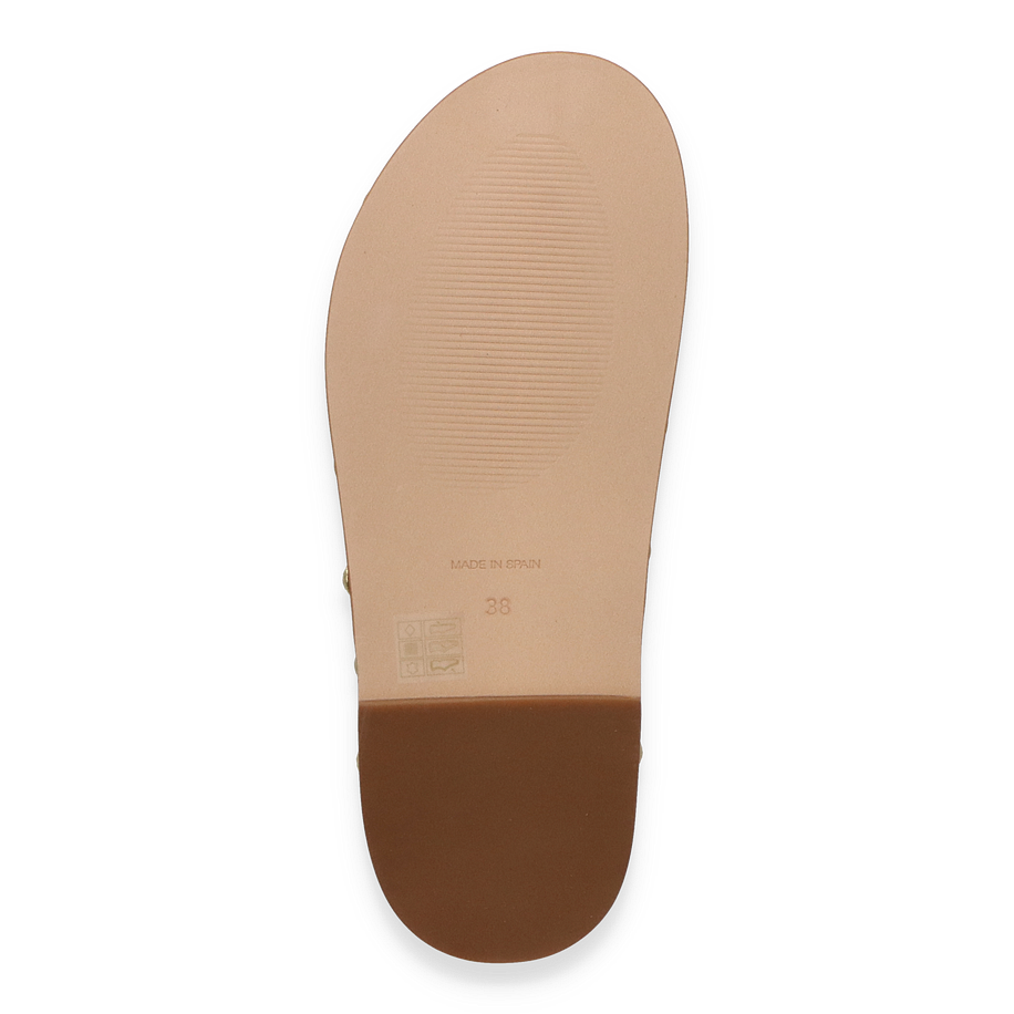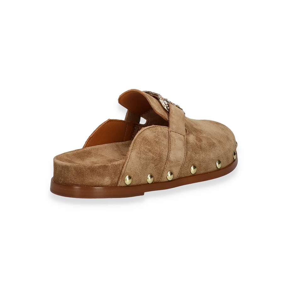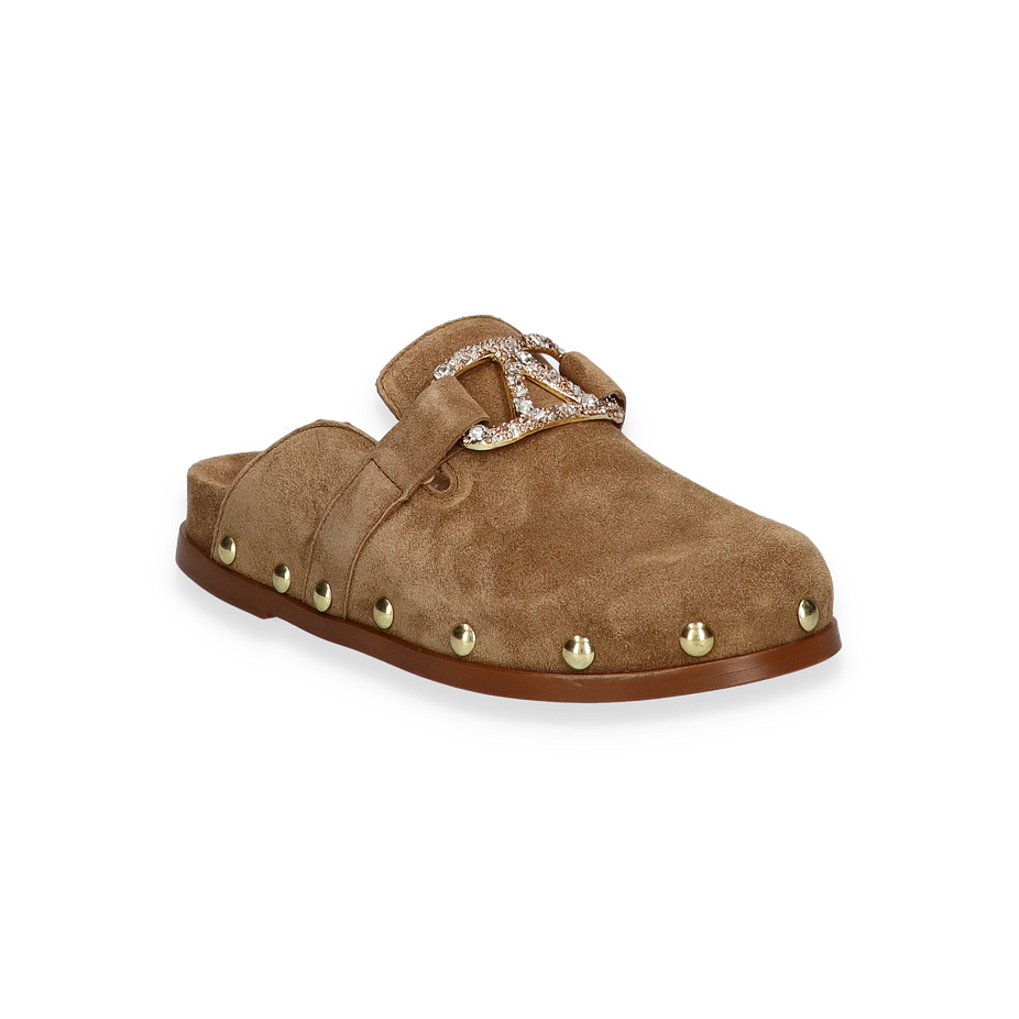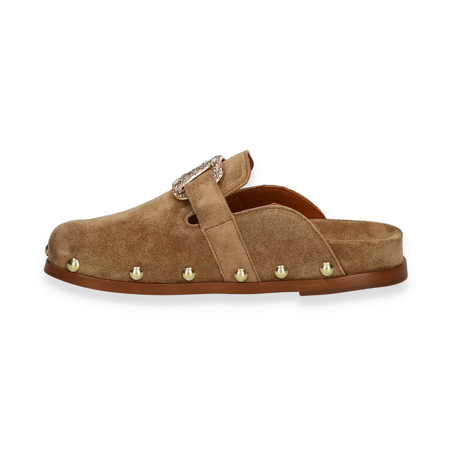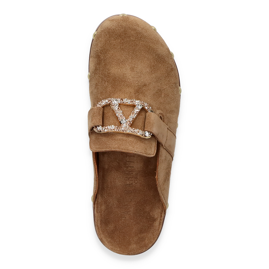 Entdecken Sie die eleganten Pantoletten für Damen von Paul Barritt in einem ansprechenden hellbraunen Farbton. Diese Schuhe zeichnen sich durch ihr hochwertiges Lederobermaterial aus, das nicht nur stilvoll, sondern auch langlebig ist. Die dekorative Schnalle mit funkelnden Details und die goldfarbenen Nieten verleihen den Pantoletten einen Hauch von Glamour und machen sie zu einem echten Blickfang. Die flache Sohle sorgt für einen bequemen Auftritt, ideal für den Alltag oder besondere Anlässe.