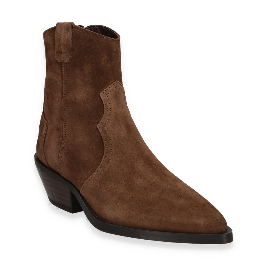 Preis inkl. MwSt.Entdecken Sie die eleganten Western Boots von Paul Barritt für Damen in einem ansprechenden Mittelbraun. Diese stilvollen Stiefeletten aus hochwertigem Velourleder bestechen durch ihr zeitloses Design und die charakteristische Silhouette. Der 5,5 cm hohe Absatz verleiht Ihnen eine feminine Note und sorgt gleichzeitig für einen bequemen Auftritt. Die raffinierte Nahtführung und die dezente Struktur des Leders unterstreichen den klassischen Western-Look und machen diese Boots zu einem vielseitigen Begleiter für verschiedene Anlässe.
