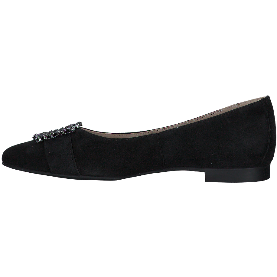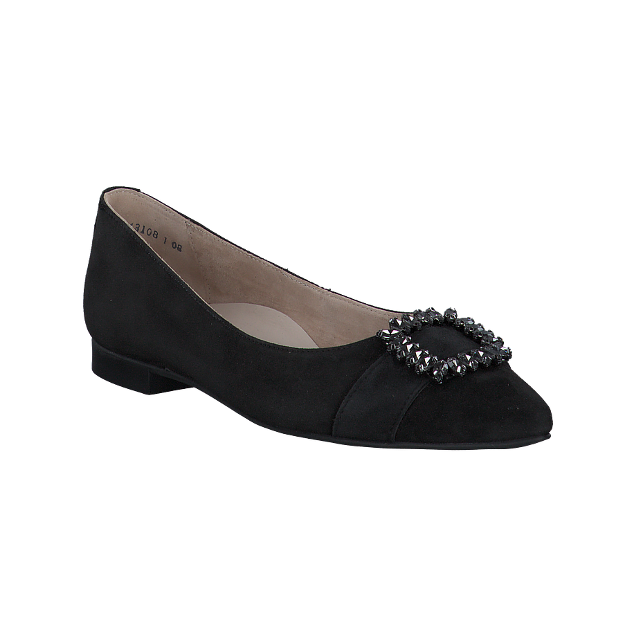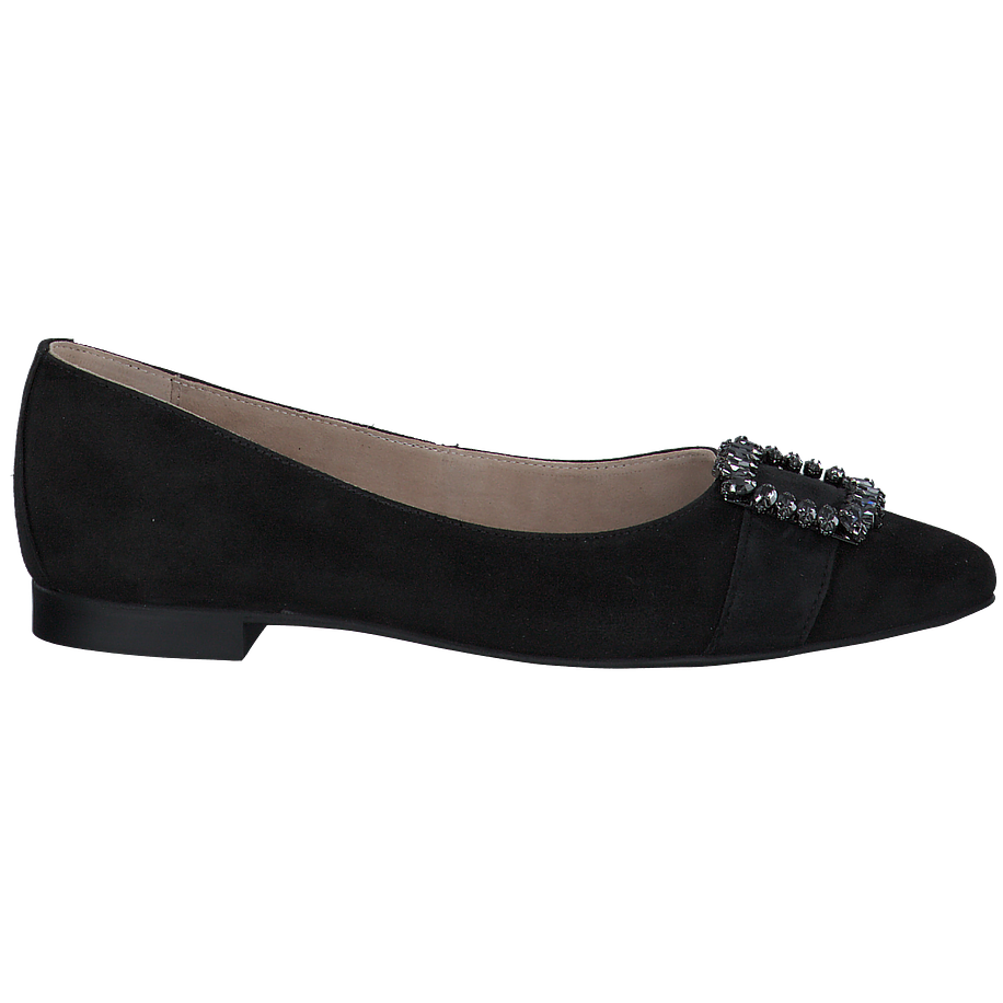 Schlichte schwarze Ballerinas zum Wohlfühlen gefällig? Dann sind diese tollen Paul Green Ballerinas genau das Richtige für Sie! Die aus hochwertigem schwarzem Wildleder gefertigten Damenschuhe überzeugen mit einem klassischen Schnitt und versprechen einen angenehmen Tragekomfort bei jedem Schritt. Das superstate schwarze Leder verfügt zudem über die PFI-Zertifizierung, sodass Sie sich bezüglich der Qualität und Nachhaltigkeit keinerlei Gedanken machen brauchen. Für einen zusätzlichen Hingucker sind die schwarzen Ballerinas mit großen schwarzen Schnallen an den Spitzen ausgestattet. Perfekt für einen eleganten Auftritt!