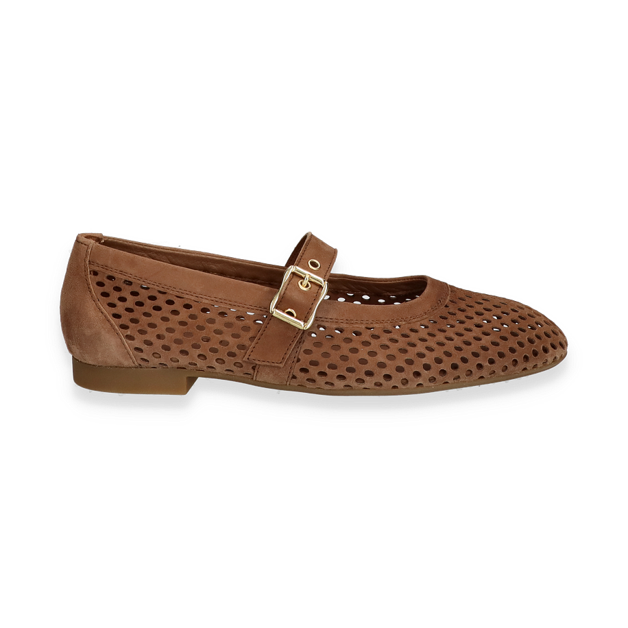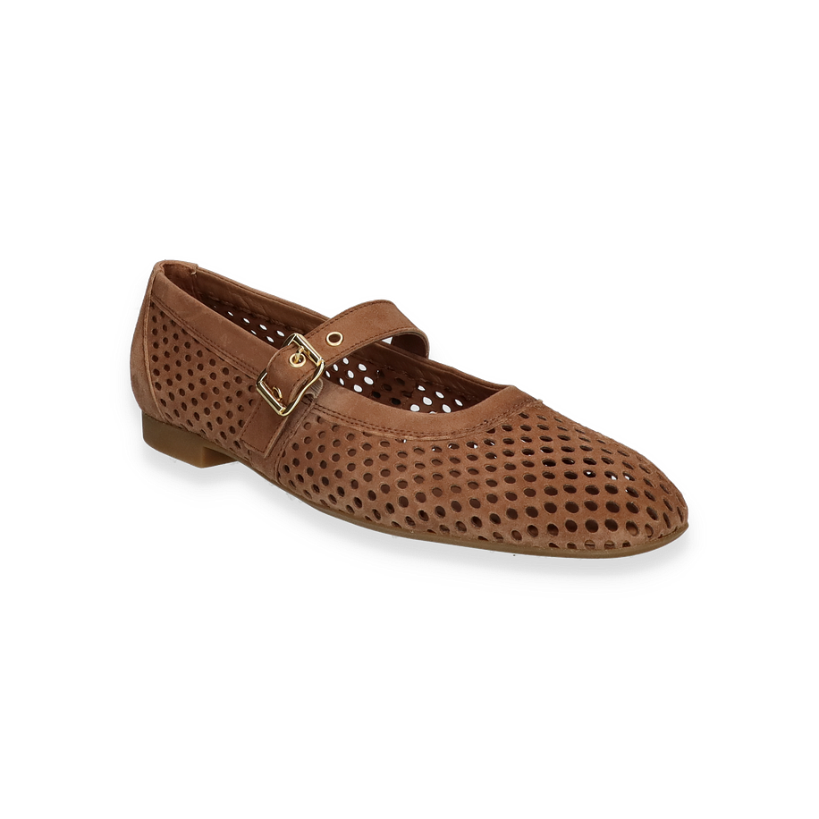 Preis inkl. MwSt.Entdecken Sie die eleganten Ballerinas von Paul Green in einem ansprechenden Mittelbraun. Diese Schuhe für Damen zeichnen sich durch ihr raffiniertes Design aus, das durch eine feine Lochmusterung und einen dezenten Riemen mit goldener Schnalle akzentuiert wird. Der flache Absatz von 1,5 cm sorgt für optimalen Tragekomfort, während die hochwertige Verarbeitung die natürliche Schönheit des Leders betont.
