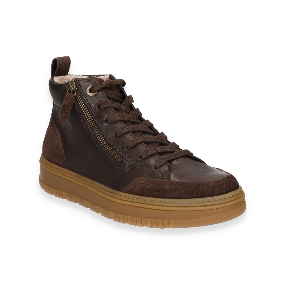 Die Paul Green Boots für Damen in Dunkelbraun vereinen stilvolles Design mit höchstem Tragekomfort. Das Obermaterial aus hochwertigem Leder verleiht den Schuhen eine elegante Optik, während der seitliche Reißverschluss und die Schnürung für eine perfekte Passform sorgen. Die robuste Gummisohle bietet nicht nur hervorragende Stabilität, sondern auch eine ansprechende Kontrastfarbe, die den Look abrundet. Diese Boots sind ideal für modebewusste Frauen, die Wert auf Qualität und Stil legen.