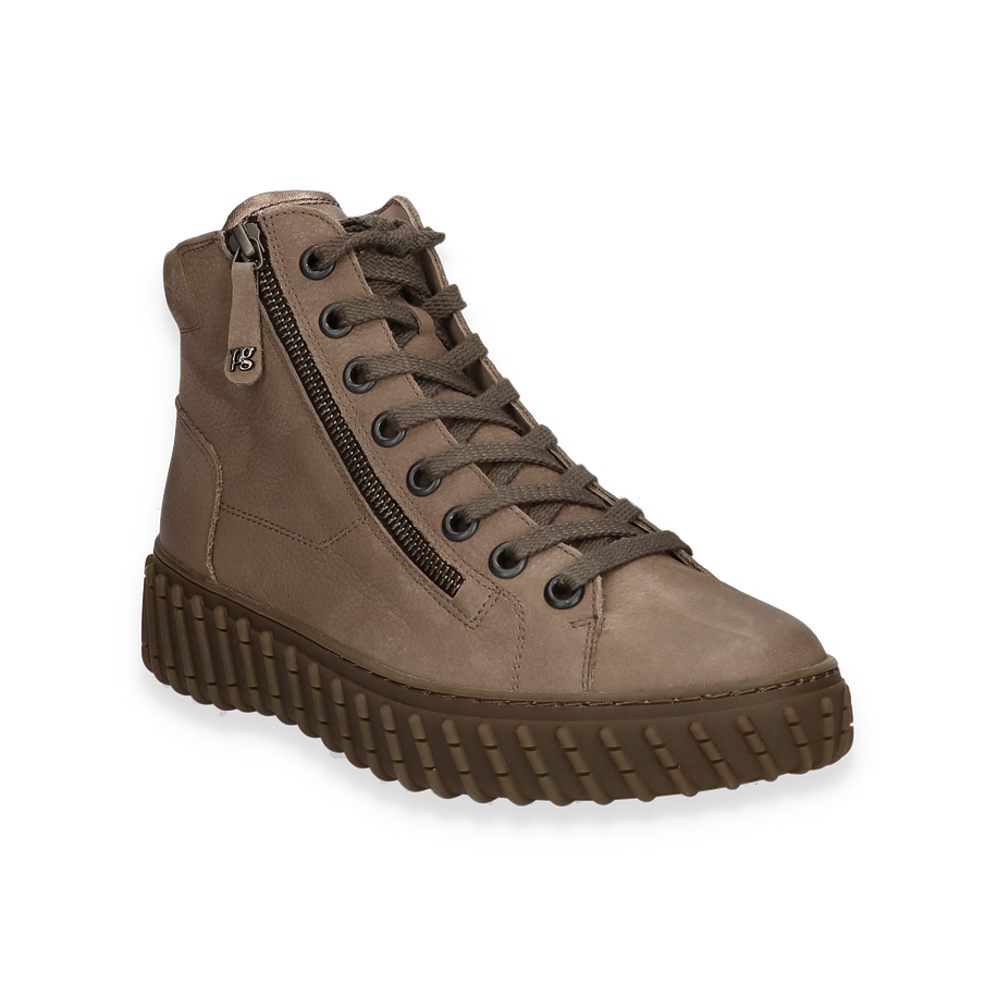 Preis inkl. MwSt.Die Paul Green Boots in der eleganten Farbe Taupe vereinen Stil und Komfort für Damen. Der robuste Look wird durch die markante Gummisohle unterstrichen, die nicht nur modisch, sondern auch funktional ist. Der seitliche Reißverschluss und die Schnürung bieten eine perfekte Passform und erleichtern das An- und Ausziehen. Mit einer Schafthöhe von 11 cm und einer Schaftweite von 18 cm bieten diese Boots optimalen Halt und Komfort.