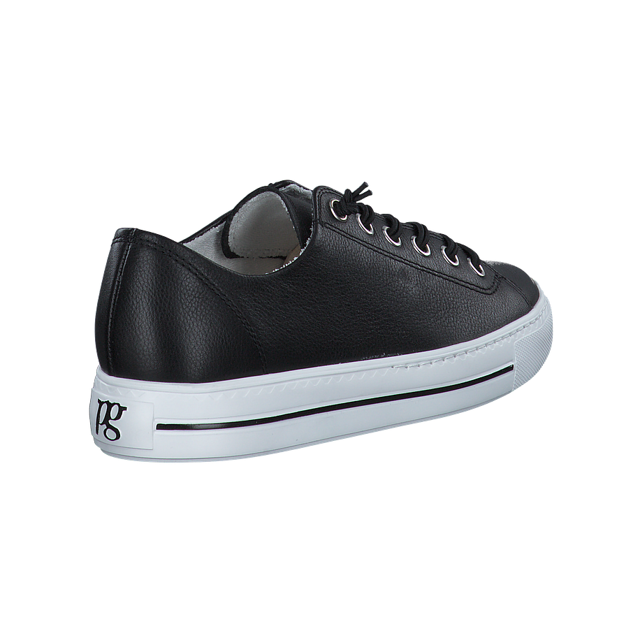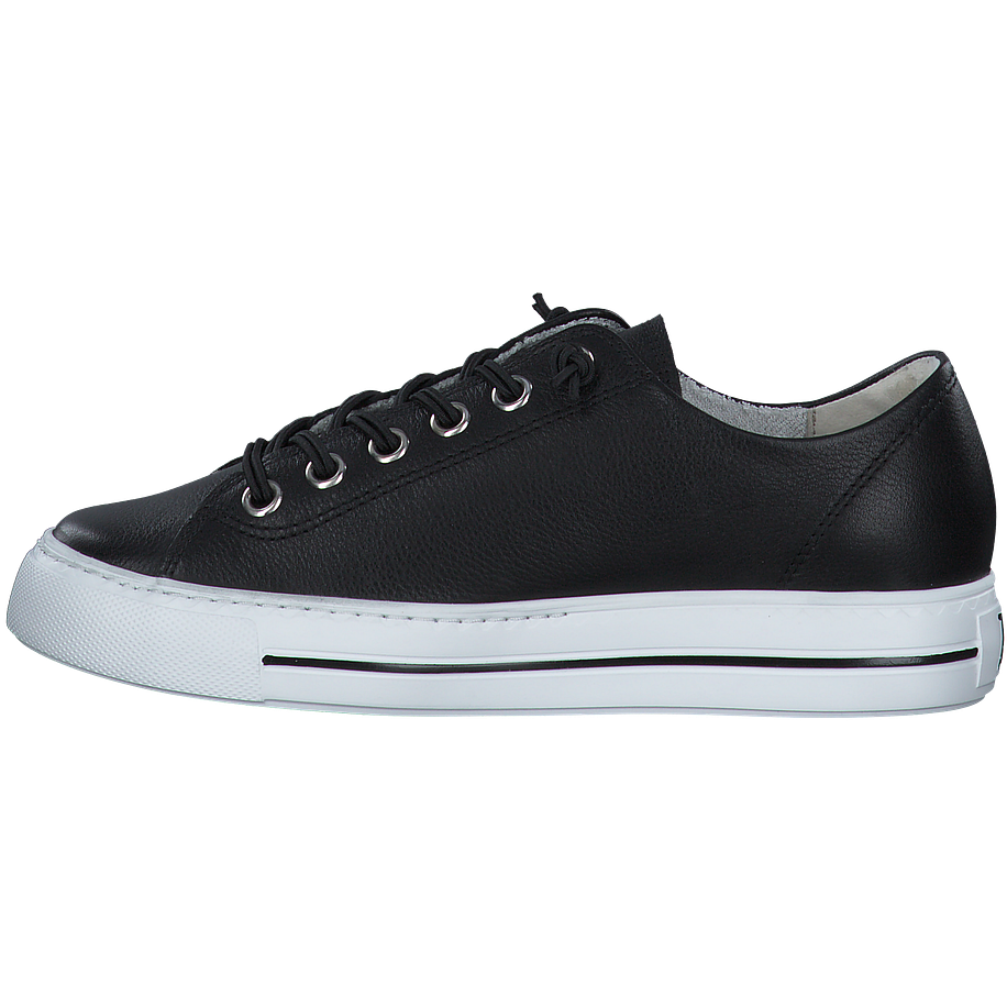 Preis inkl. MwSt.Diese modischen Paul Green Schnürschuhe für Damen sind ein cooles und modernes Schuhmodell, das perfekt zu einem lässigen Streetwear-Look passt. Die schwarz-weiße Farbkombination verleiht diesen Schuhen eine auffällige Optik und lässt sie aus der Masse herausstechen. Die Schnürung sorgt für eine optimale Passform und einen angenehmen Tragekomfort. Diese Schuhe können gut zu Jeans und einem T-Shirt, aber auch zu einem Rock oder Kleid getragen werden. Die schwarzen Schnürschuhe mit den auffälligen weißen Gummisohlen sind ein trendiges Schuhmodell, das die Blicke auf sich zieht und für einen coolen Style sorgt.