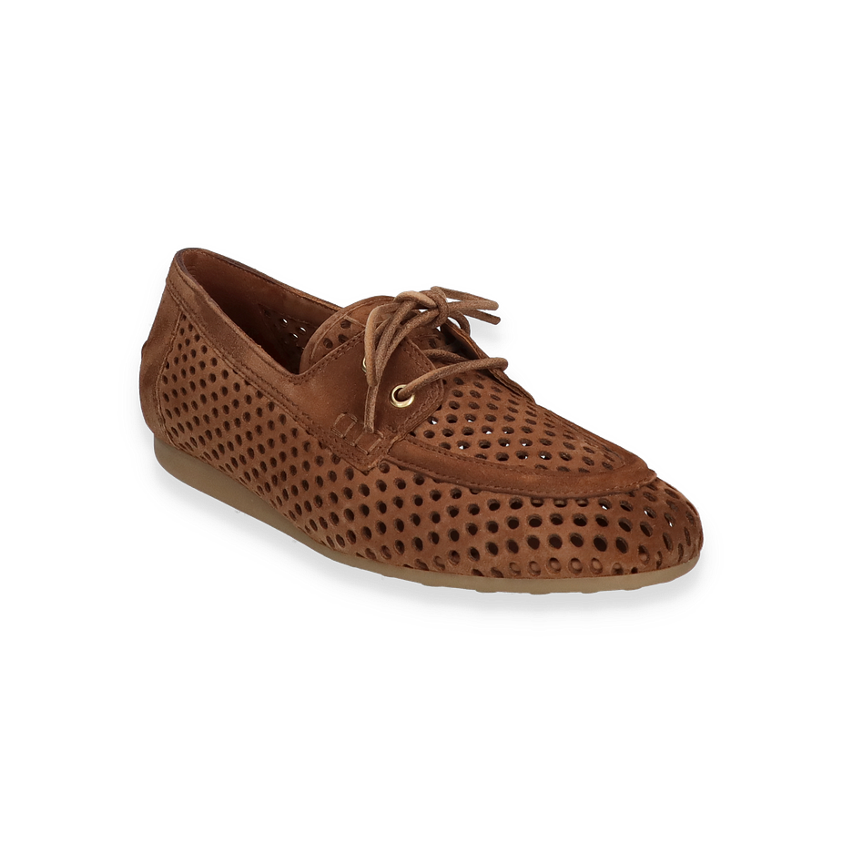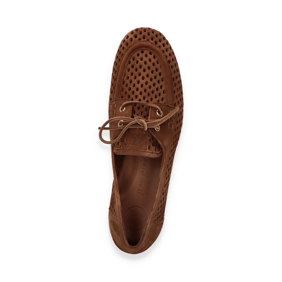 Entdecken Sie die stilvollen Schnürschuhe für Damen von Paul Green in einem eleganten Mittelbraun. Diese Schuhe zeichnen sich durch ihr perforiertes Design aus, das nicht nur optisch ansprechend ist, sondern auch für eine angenehme Belüftung sorgt. Die feinen Schnürsenkel und die goldfarbenen Ösen verleihen dem Schuh einen Hauch von Raffinesse. Die flache Gummisohle bietet optimalen Halt und macht diesen Schuh zu einem idealen Begleiter für den Alltag.