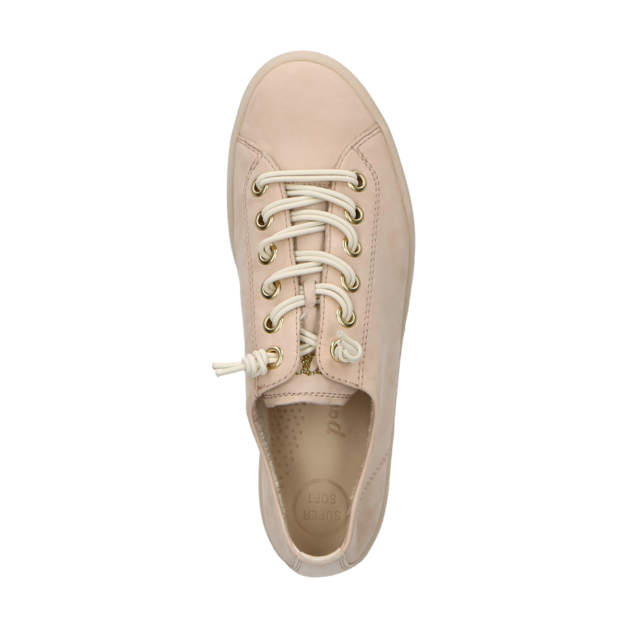 Entdecken Sie den eleganten Sneaker für Damen von Paul Green in einem ansprechenden Beige-Ton. Dieser Sneaker besticht durch sein minimalistisches Design und die hochwertige Verarbeitung. Der glatte Leder-Obermaterial verleiht dem Schuh eine edle Optik, während die goldfarbenen Ösen und die cremefarbenen Schnürsenkel stilvolle Akzente setzen. Die dezente 2,5 cm hohe Sohle sorgt für einen angenehmen Tragekomfort und eine moderne Silhouette.