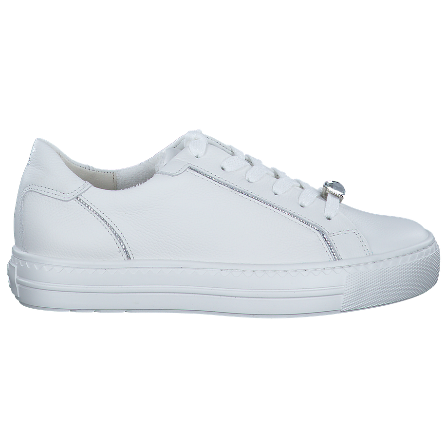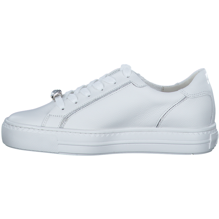 Preis inkl. MwSt.Entdecken Sie den weißen Sneaker von Paul Green, perfekt für Damen, die Wert auf Stil und Komfort legen. Dieser Schuh besticht durch sein Obermaterial aus Leder und Textil, das für eine angenehme Passform sorgt. Die Innensohle aus Leder und das Futter aus Leder und Textil bieten hohen Tragekomfort. Mit einer Absatzhöhe von 3,5 cm und einer Sohle aus Gummi, bietet dieser Sneaker optimalen Halt und Langlebigkeit. Ein besonderes Highlight ist die Strassstein-Verzierung, die dem Schuh einen Hauch von Glamour verleiht.