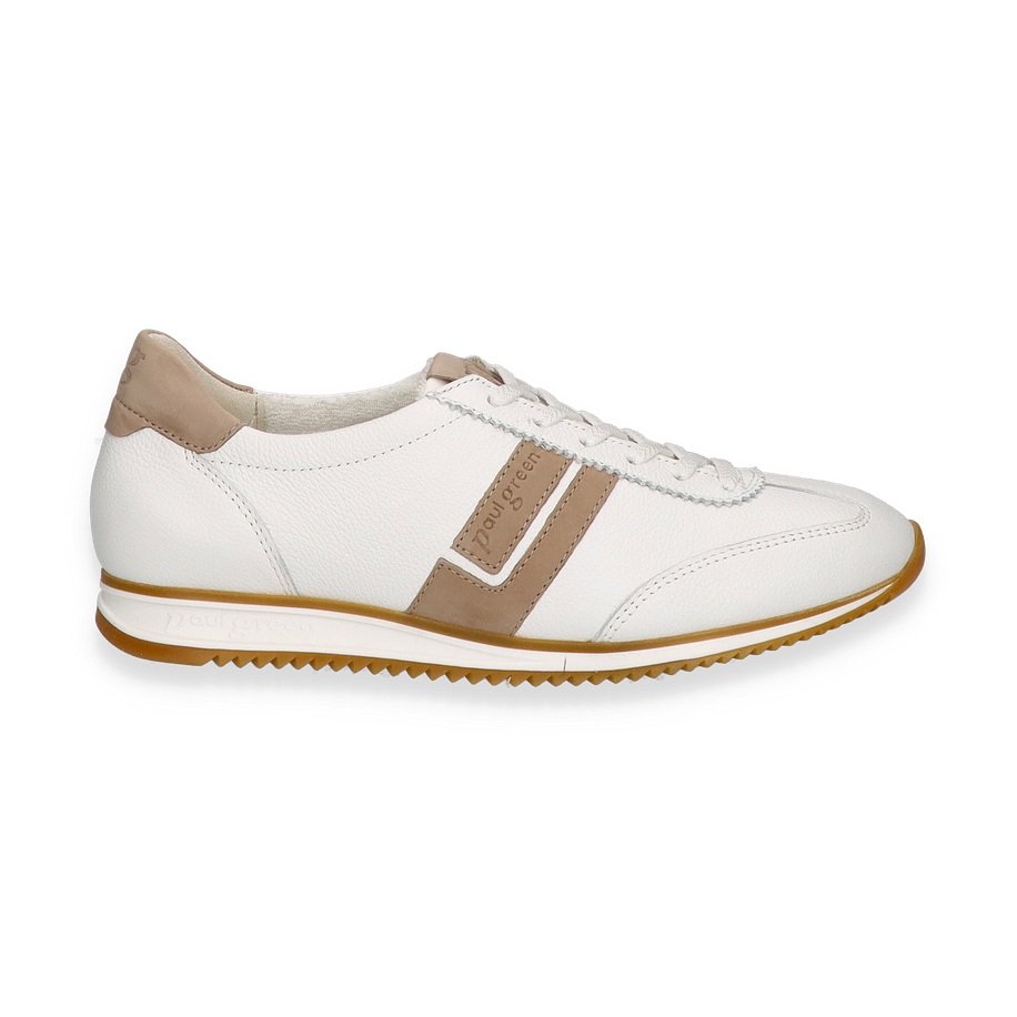 Entdecken Sie den eleganten Sneaker von Paul Green für Damen, der in einem stilvollen Weiß erstrahlt. Das Design besticht durch seine harmonische Kombination aus Leder und Textil, die dem Schuh eine luxuriöse und dennoch sportliche Ausstrahlung verleiht. Die subtile Farbgebung wird durch dezente Akzente in Beige ergänzt, die dem Sneaker eine zeitlose Eleganz verleihen. Die flache Sohle sorgt für einen modernen Look und bietet gleichzeitig optimalen Komfort.