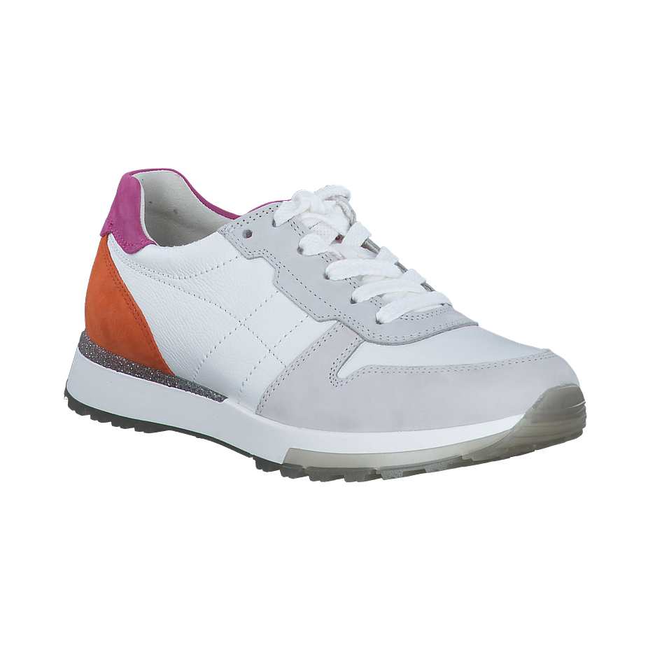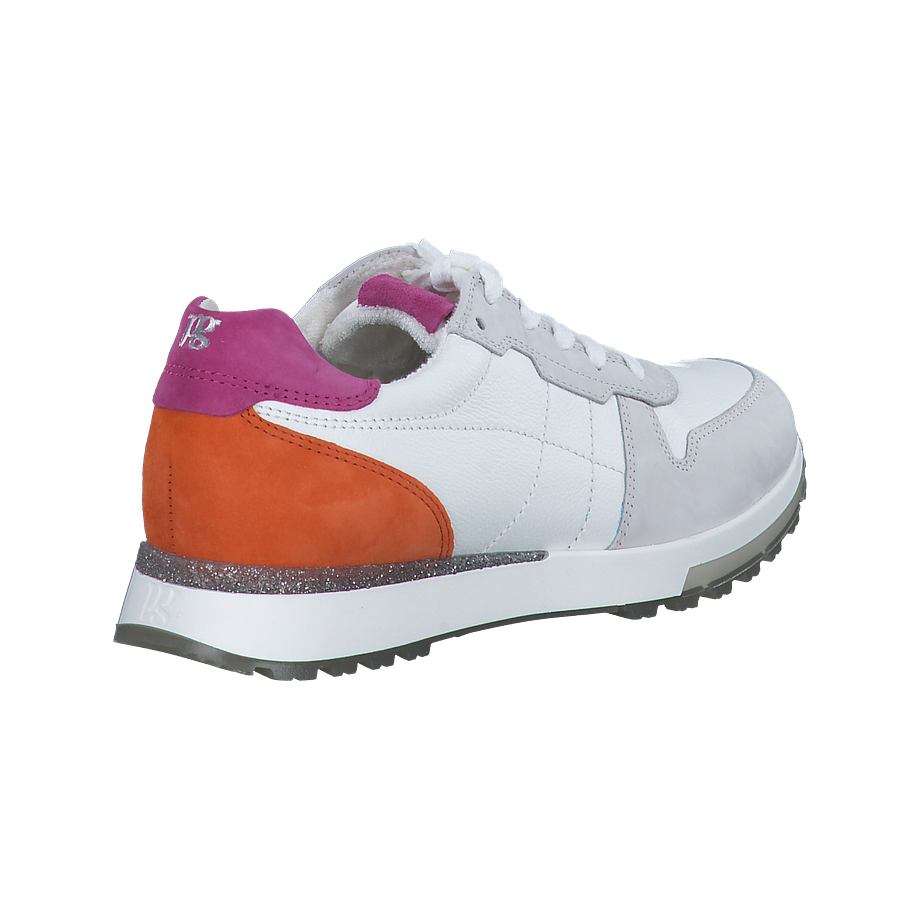 Entdecken Sie den Paul Green Sneaker für Damen, ein stilvolles Schuhwerk, das Komfort und Mode vereint. Hergestellt aus hochwertigem Textil und Leder, bietet dieser Sneaker eine perfekte Mischung aus Haltbarkeit und Eleganz. Die Innensohle aus Textil und das Futter aus Leder sorgen für ein angenehmes Tragegefühl. Mit einer Absatzhöhe von 2,5 cm und einer Sohle aus Gummi bietet dieser Sneaker optimalen Komfort und Rutschfestigkeit. Der Sneaker präsentiert sich in Weiß und Bunt, mit einer besonderen pink/orangenen Ferse und einer glitzernden Verzierung an der Sohle. Ein Must-Have für jede modebewusste Frau.