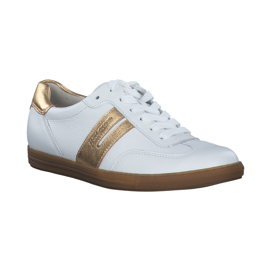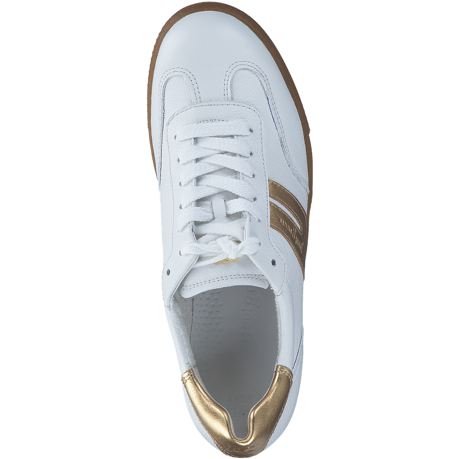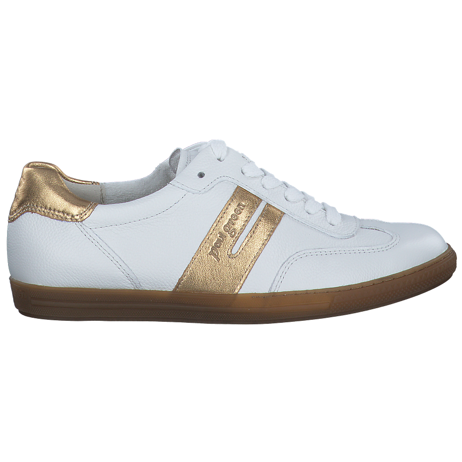 Preis inkl. MwSt.Erleben Sie den ultimativen Komfort und Stil mit dem weißen Sneaker von Paul Green für Damen. Dieser Schuh besticht durch sein Obermaterial aus Leder, das für eine elegante Optik sorgt. Die Innensohle aus Leder und das Futter aus Leder und Textil bieten einen hohen Tragekomfort. Mit einer Absatzhöhe von 2,5 cm und einer Sohle aus Gummi, bietet dieser Sneaker eine perfekte Balance zwischen Komfort und Halt. Die goldfarbenen Details verleihen dem Schuh einen Hauch von Raffinesse. Dieser Paul Green Sneaker ist die perfekte Ergänzung für jede Garderobe.
