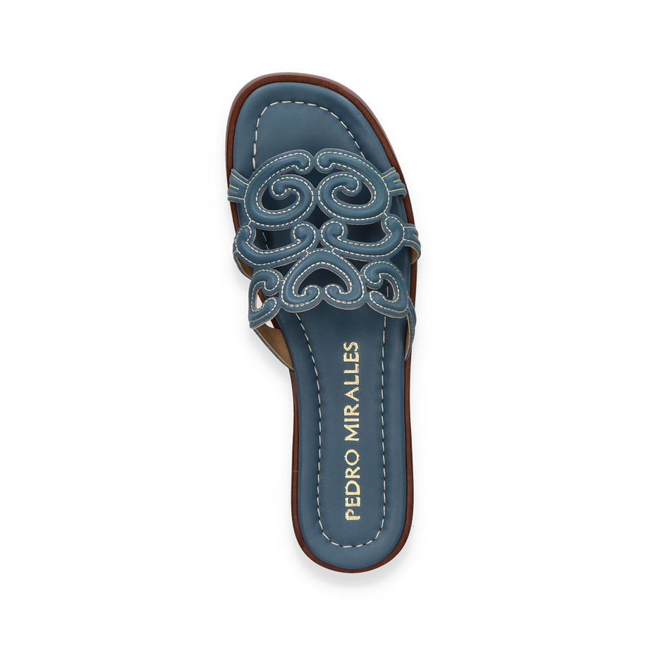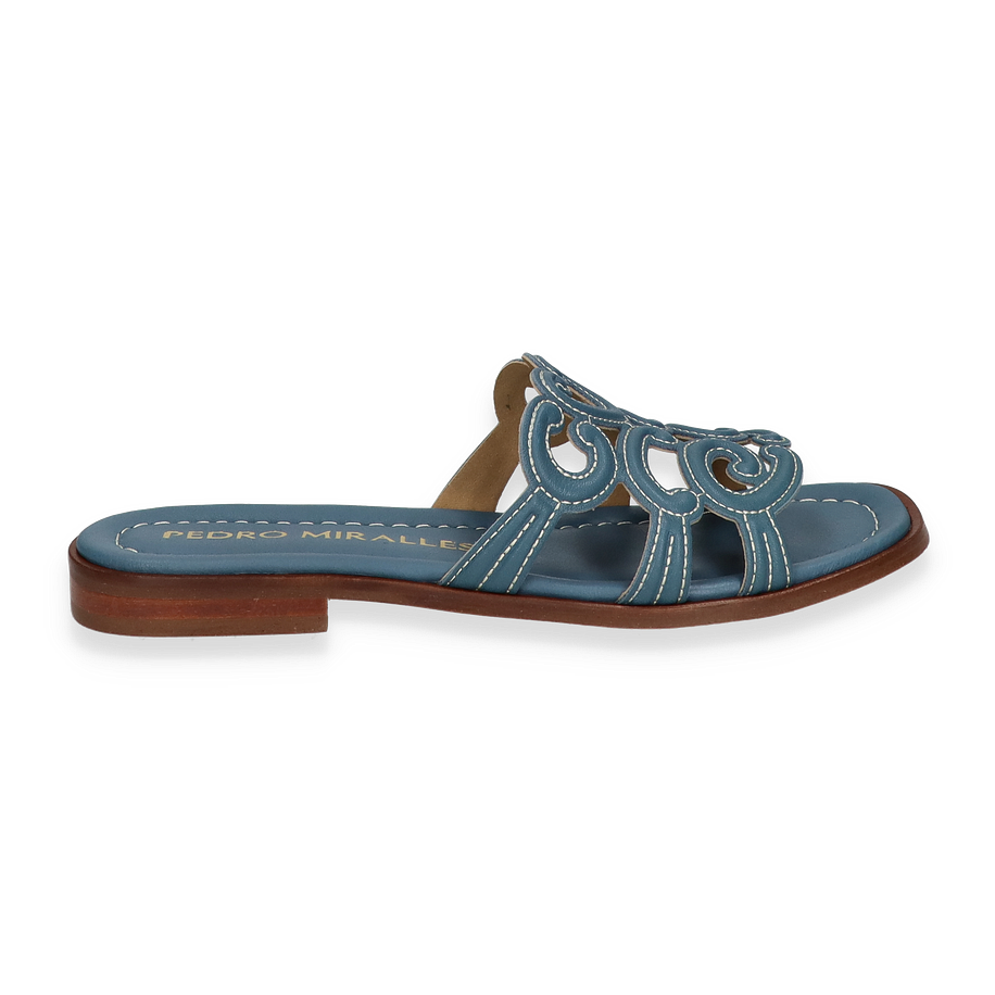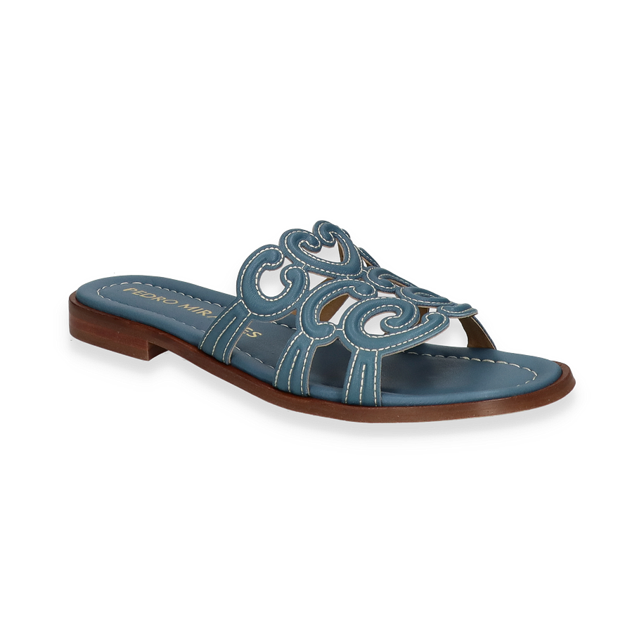 Entdecken Sie die eleganten Pantoletten ATENEA von Pedro Miralles in einem ansprechenden Hellblau. Diese stilvollen Schuhe für Damen zeichnen sich durch ein kunstvolles Design aus, das durch geschwungene Details auf dem Obermaterial aus hochwertigem Leder besticht. Die flache Sohle und der dezente Absatz von 1,5 cm bieten Komfort und Eleganz zugleich, während die sorgfältige Verarbeitung die Exklusivität dieser Pantoletten unterstreicht.