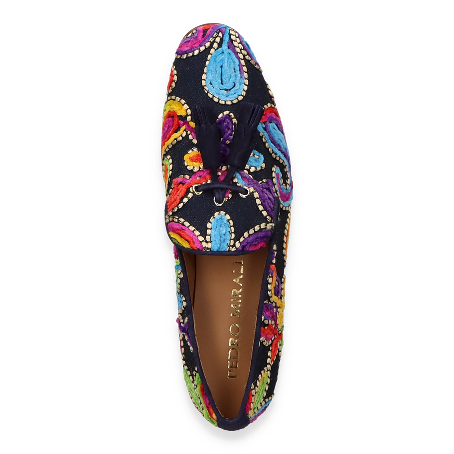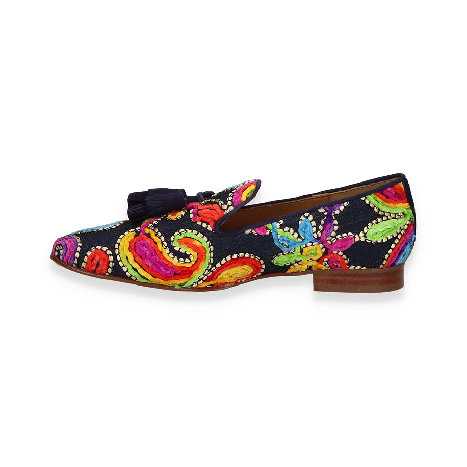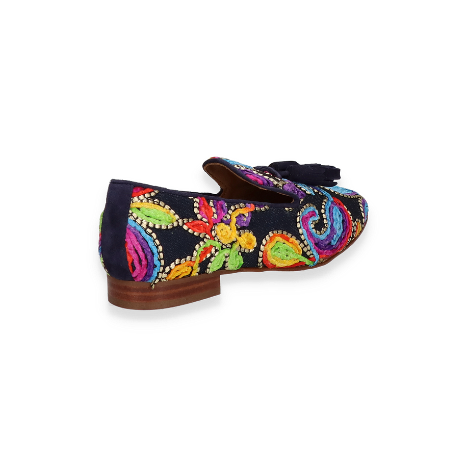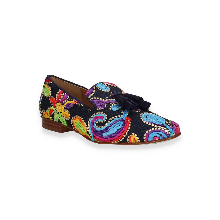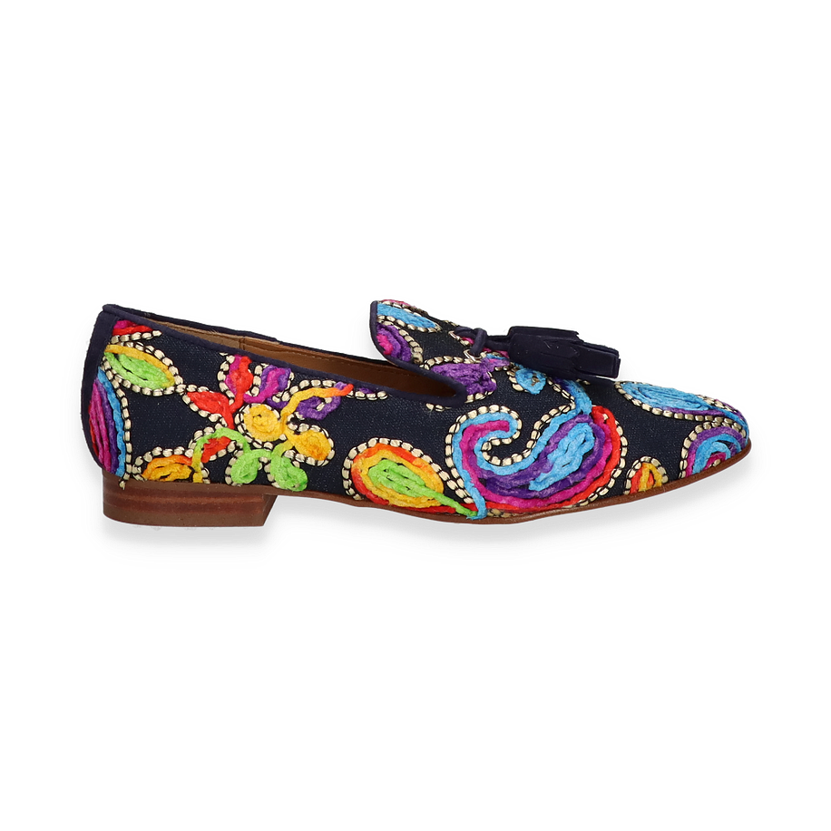 Art.Nr.: 103187980602 Material: Textil Innenmaterial: Leder Innensohle: Leder Sohle: Ledersohle Absatzhöhe: ca. 1,5 cm Farbe: Blau/Bunt MADE IN EUROPE