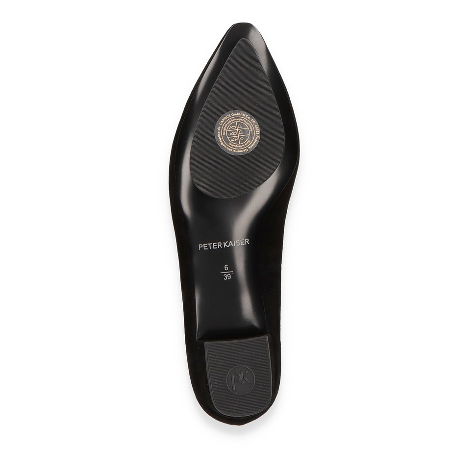 Preis inkl. MwSt.Die klassischen Pumps von Peter Kaiser in elegantem Schwarz sind die perfekte Wahl für Damen, die zeitlose Eleganz und Komfort schätzen. Mit ihrem dezenten 2,5 cm Absatz bieten sie eine subtile Erhöhung, die sowohl stilvoll als auch bequem ist. Das Design wird durch eine zarte Schleife auf der Vorderseite akzentuiert, die dem Schuh einen femininen Touch verleiht. Der Schuh passt sich durch seine schlichte Eleganz mühelos jedem Outfit an und ist sowohl für den Alltag als auch für besondere Anlässe geeignet.