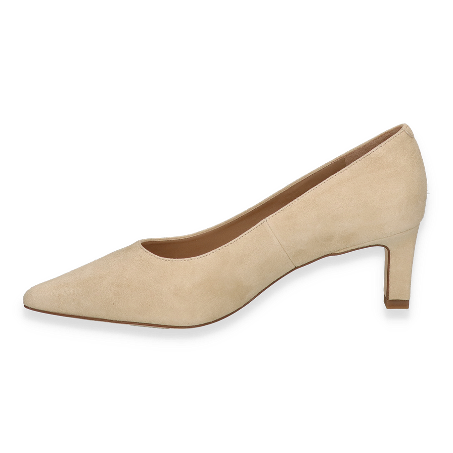 Preis inkl. MwSt.Die Peter Kaiser Klassische Pumps für Damen präsentieren sich in einem eleganten Beige-Ton, der zeitlose Raffinesse ausstrahlt. Mit einem schlanken, 6 cm hohen Absatz bieten diese Schuhe eine perfekte Balance zwischen Stil und Komfort. Das Obermaterial aus hochwertigem Leder verleiht den Pumps eine luxuriöse Optik, während die spitz zulaufende Form den femininen Charme unterstreicht. Diese Pumps sind die ideale Wahl für formelle Anlässe oder einen stilvollen Büroauftritt.