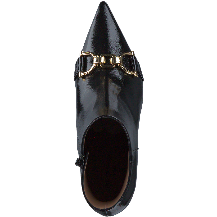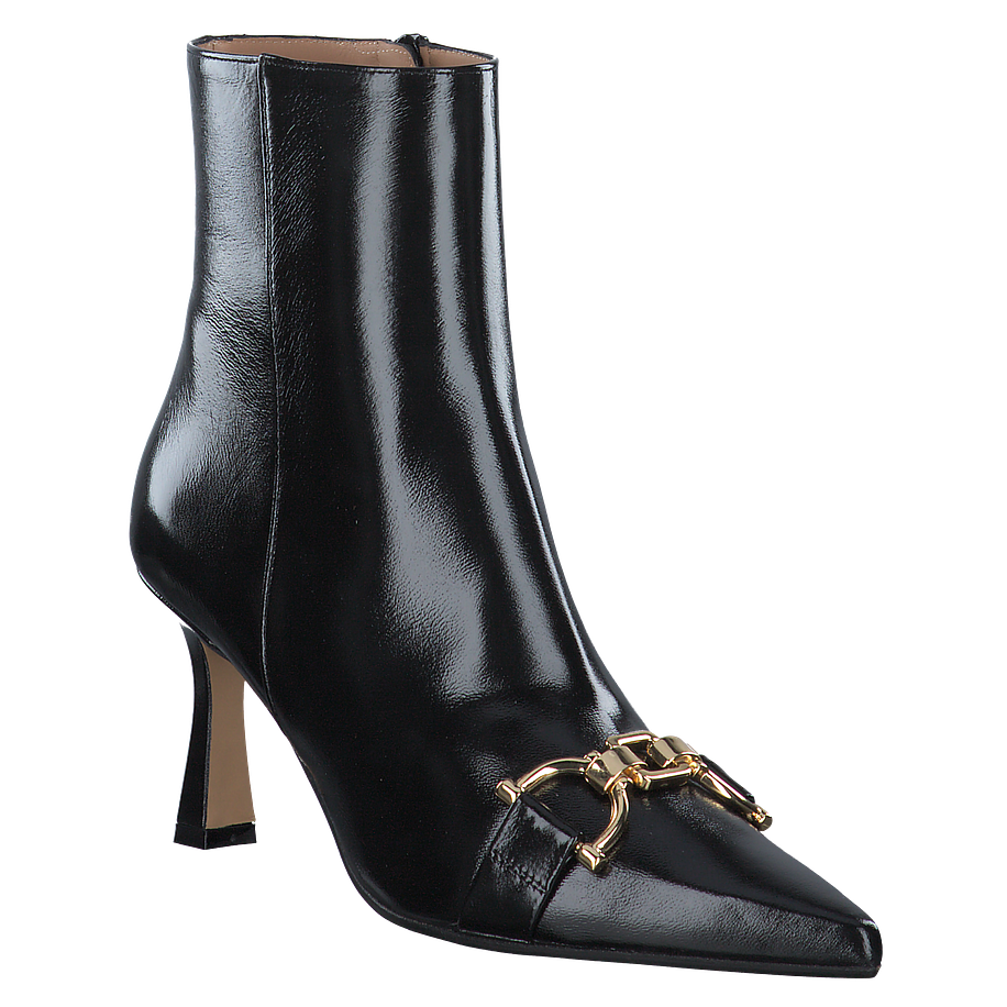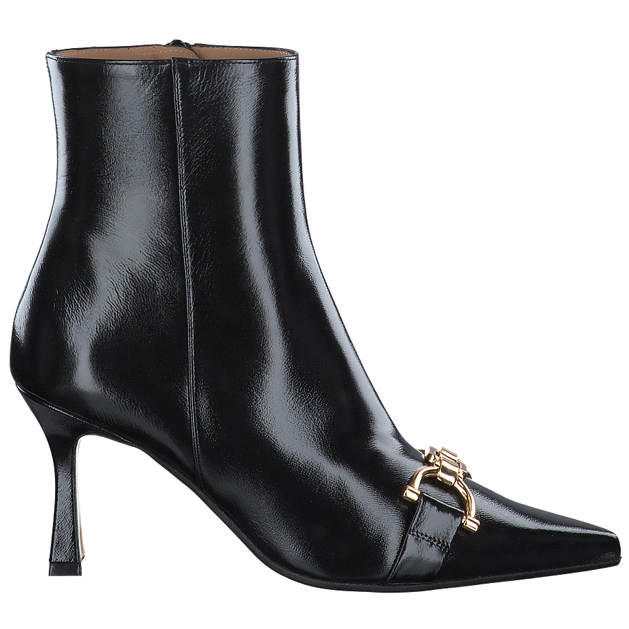 Preis inkl. MwSt.Sie sind auf der Suche nach stilvollen und bequemen Schuhen? Dann sind diese schwarzen Phillip Hardy Stiefeletten aus Leder mit goldenen Schnallenverzierungen und spitzer Form genau das Richtige für Sie! Das hochwertige Leder verleiht ihnen eine luxuriöse Ausstrahlung und sorgt für Langlebigkeit. Die goldfarbenen Schnallenverzierungen verleihen den Stiefeletten einen Hauch von Eleganz und setzen einen glamourösen Akzent. Die spitze Form des Schuhs verleiht dem Fuß eine schlanke Silhouette und wirkt besonders feminin. Ob für formelle Anlässe oder um Ihrem Alltagsoutfit einen Hauch von Raffinesse zu verleihen, diese Stiefeletten sind die perfekte Wahl für stilbewusste Frauen, die Komfort und Stil kombinieren möchten.