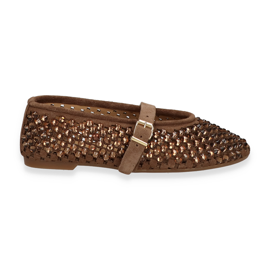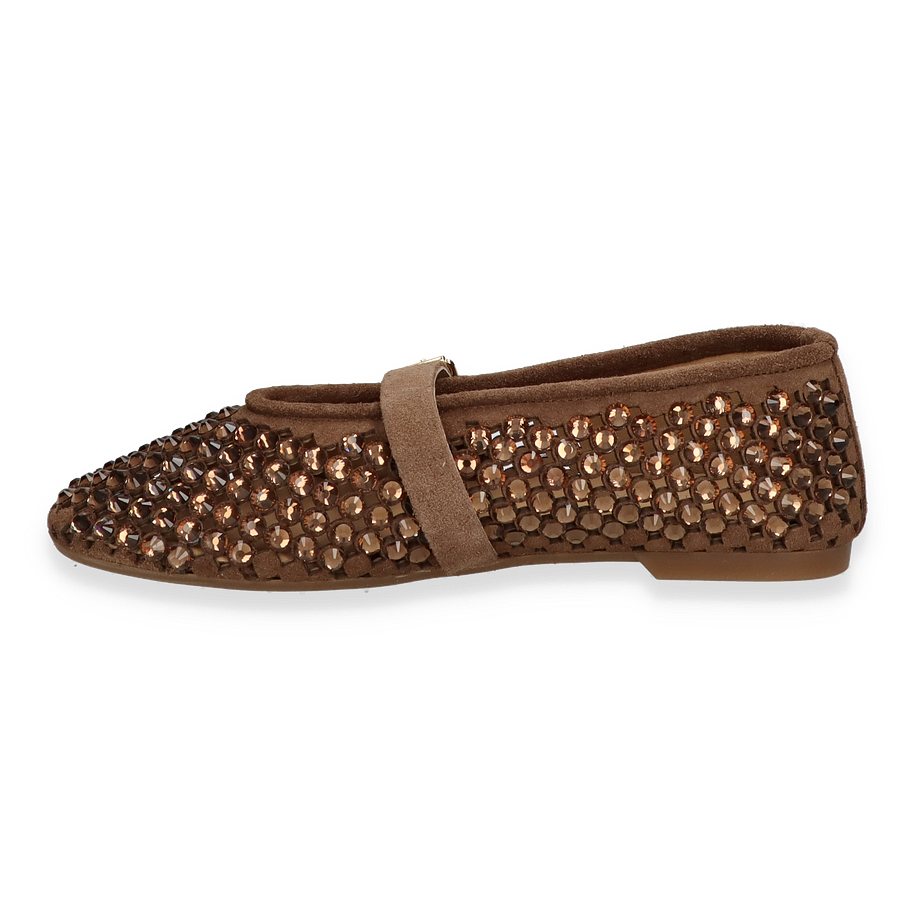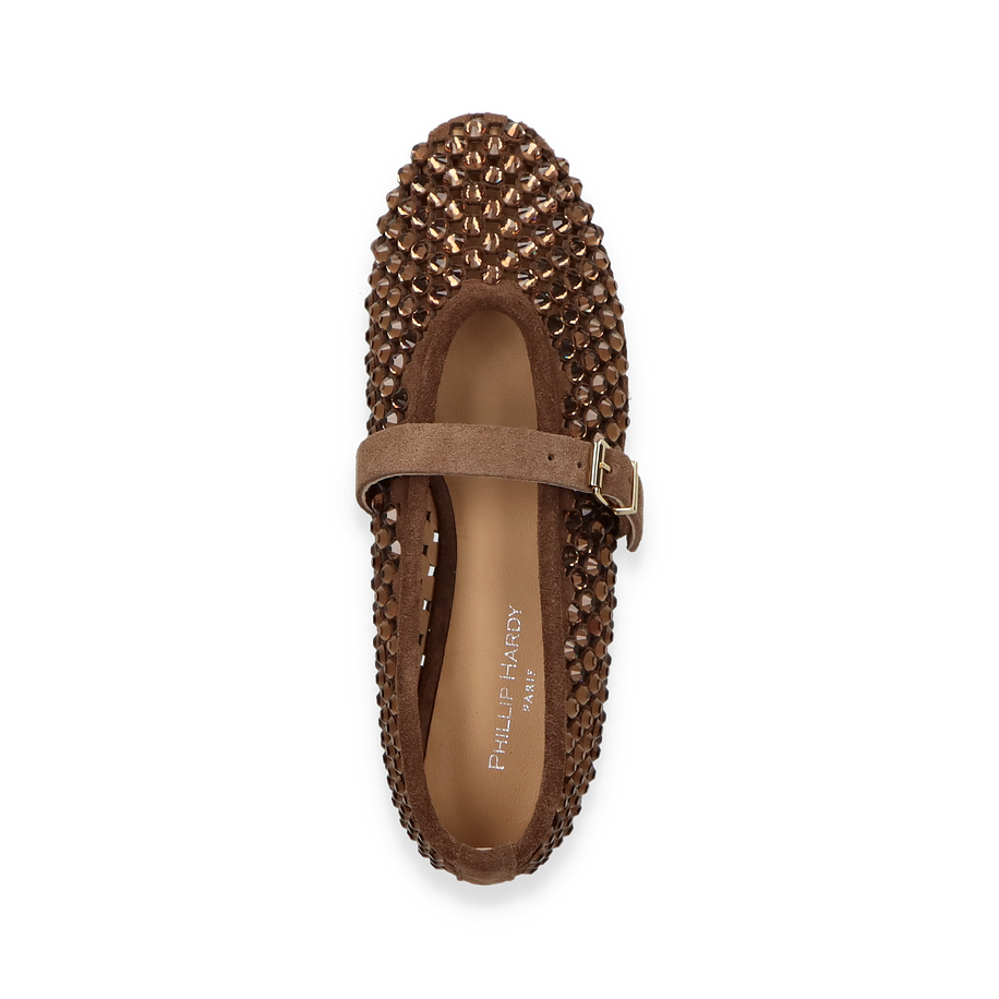 Preis inkl. MwSt.Entdecken Sie die exquisiten Ballerinas von Phillip Hardy, die in einem eleganten Mittelbraun erstrahlen. Diese Schuhe für Damen vereinen Stil und Komfort mit einem auffälligen Design, das durch funkelnde Verzierungen besticht. Der dezente Riemen mit goldfarbener Schnalle verleiht dem Schuh eine zusätzliche Note von Raffinesse. Die flache Sohle sorgt für einen bequemen Auftritt, während das weiche Leder einen luxuriösen Tragekomfort bietet.