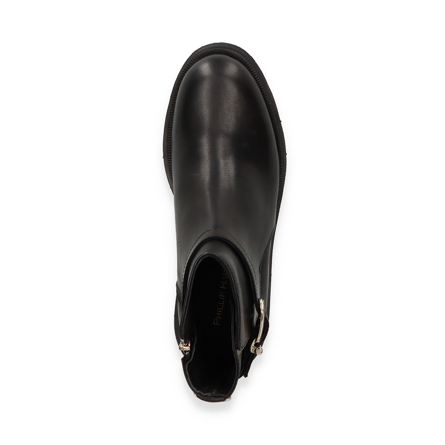 Entdecken Sie die eleganten schwarzen Boots für Damen von Phillip Hardy, die durch ihr zeitloses Design bestechen. Diese stilvollen Stiefeletten zeichnen sich durch eine glatte Lederoberfläche und dezente Schnallenakzente aus, die jedem Outfit einen Hauch von Raffinesse verleihen. Mit einer robusten Gummisohle und einem praktischen Reißverschluss bieten sie sowohl Komfort als auch sicheren Halt. Der dezente Absatz von 2,5 cm sorgt für eine angenehme Höhe, die ideal für den täglichen Gebrauch ist.