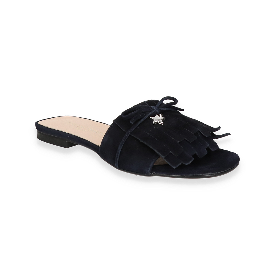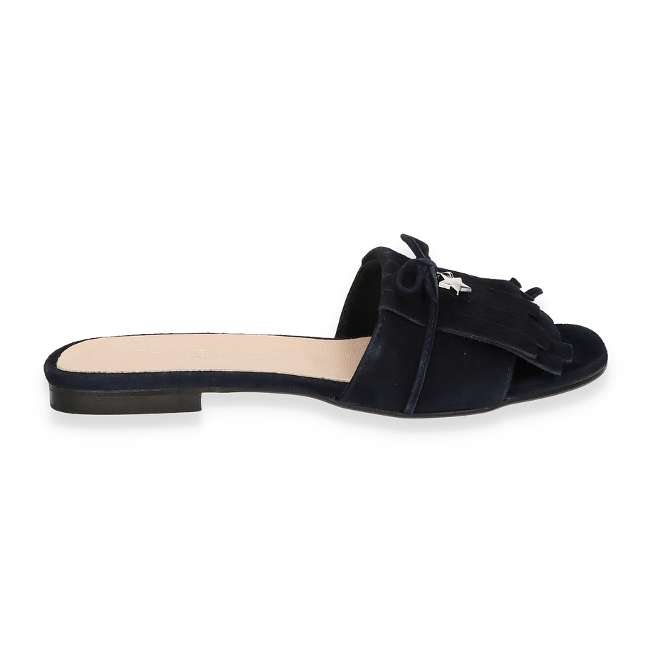 Preis inkl. MwSt.Die Phillip Hardy Pantoletten für Damen präsentieren sich in einem eleganten Dunkelblau, das jedem Outfit einen Hauch von Raffinesse verleiht. Der Schuh besticht durch seine stilvolle Fransenverzierung und einen charmanten Sternanhänger, der dem Design eine verspielte Note hinzufügt. Die flache Sohle mit einer Absatzhöhe von 1,5 cm sorgt für angenehmen Tragekomfort und macht diese Pantoletten zu einem idealen Begleiter für den Alltag oder besondere Anlässe.