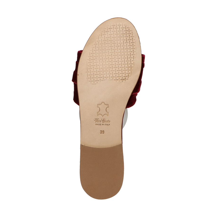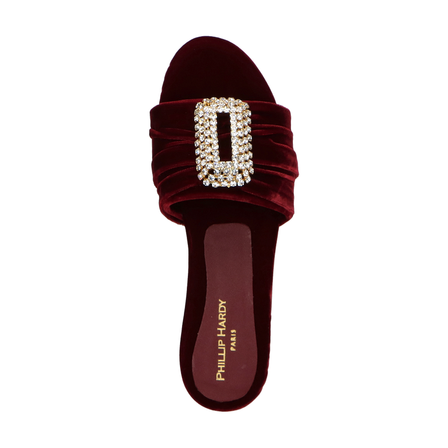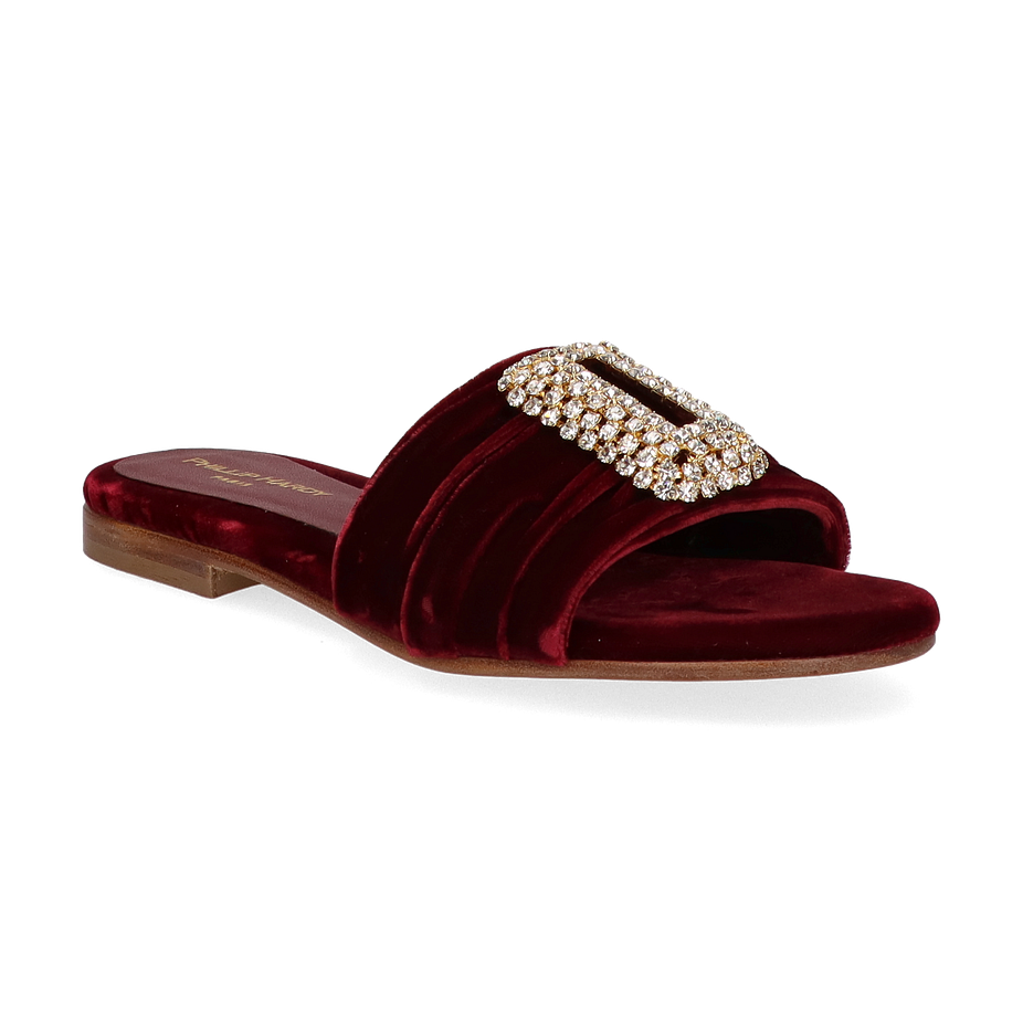 Preis inkl. MwSt.Die Phillip Hardy Pantoletten für Damen in der eleganten Farbe Bordeaux vereinen Stil und Komfort auf beeindruckende Weise. Das samtige Textil-Obermaterial verleiht diesen Schuhen eine luxuriöse Optik, während die funkelnde Schmuckapplikation auf dem Riemen einen Hauch von Glamour hinzufügt. Der flache Absatz von 2 cm sorgt für einen bequemen Gang, ideal für den Alltag oder besondere Anlässe. Diese Pantoletten sind die perfekte Wahl für modebewusste Frauen, die Wert auf Qualität und Design legen.