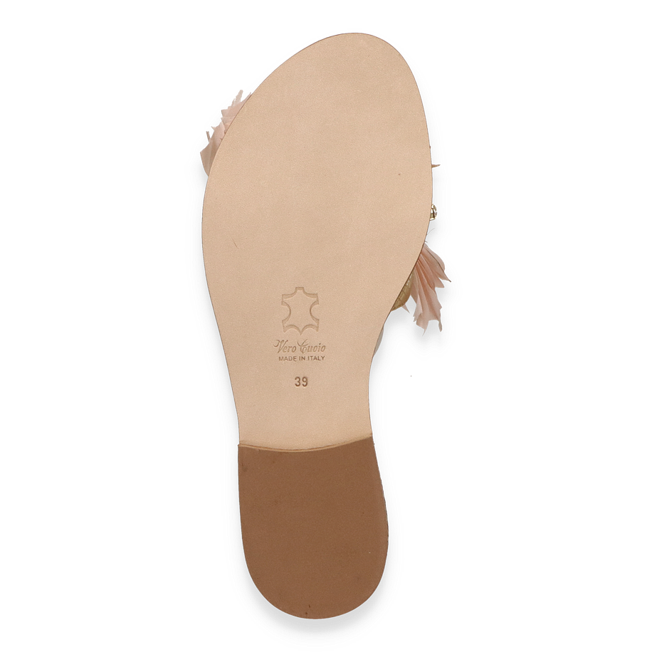 Die Phillip Hardy Pantoletten für Damen präsentieren sich in einem luxuriösen Goldton, der sofort ins Auge fällt. Die Kombination aus Leder und sonstigem Material im Obermaterial verleiht diesen Schuhen eine elegante und zugleich moderne Ausstrahlung. Die dekorativen Details aus funkelnden Kristallen und zarten Stoffapplikationen verleihen den Pantoletten einen Hauch von Glamour und machen sie zum perfekten Begleiter für besondere Anlässe oder stilvolle Alltagslooks.