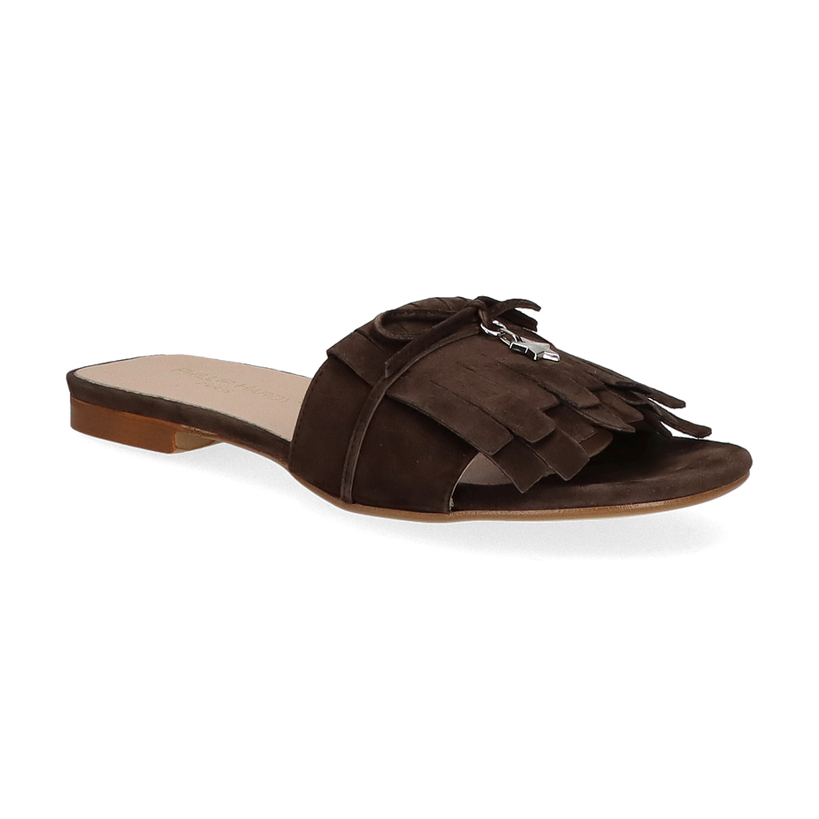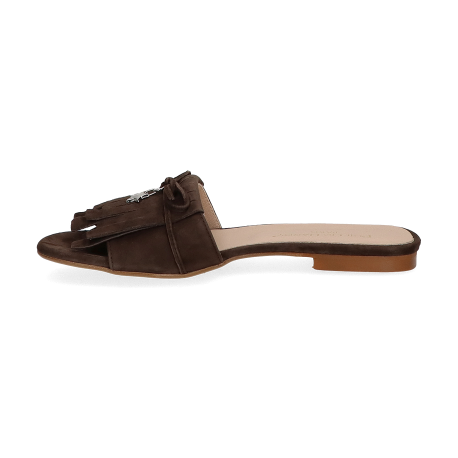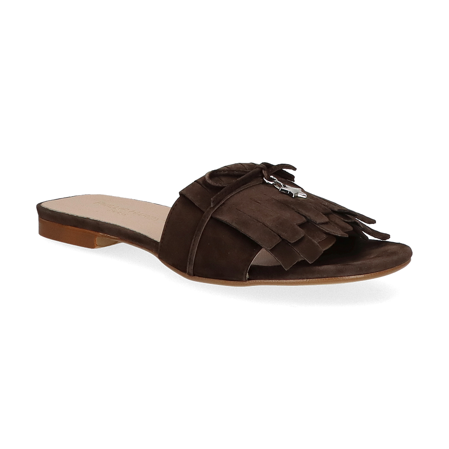 Preis inkl. MwSt.Entdecken Sie die eleganten Pantoletten für Damen, die mit ihrem raffinierten Design und hochwertigen Materialien überzeugen. Diese stilvollen Schuhe präsentieren sich in einem tiefen, satten Braunton, der jedem Outfit eine edle Note verleiht. Die dekorativen Fransen und der charmante Sternanhänger auf dem Obermaterial setzen modische Akzente, während die flache Sohle für einen komfortablen Auftritt sorgt. Ideal für den Sommer, bieten diese Pantoletten eine perfekte Mischung aus Stil und Bequemlichkeit.