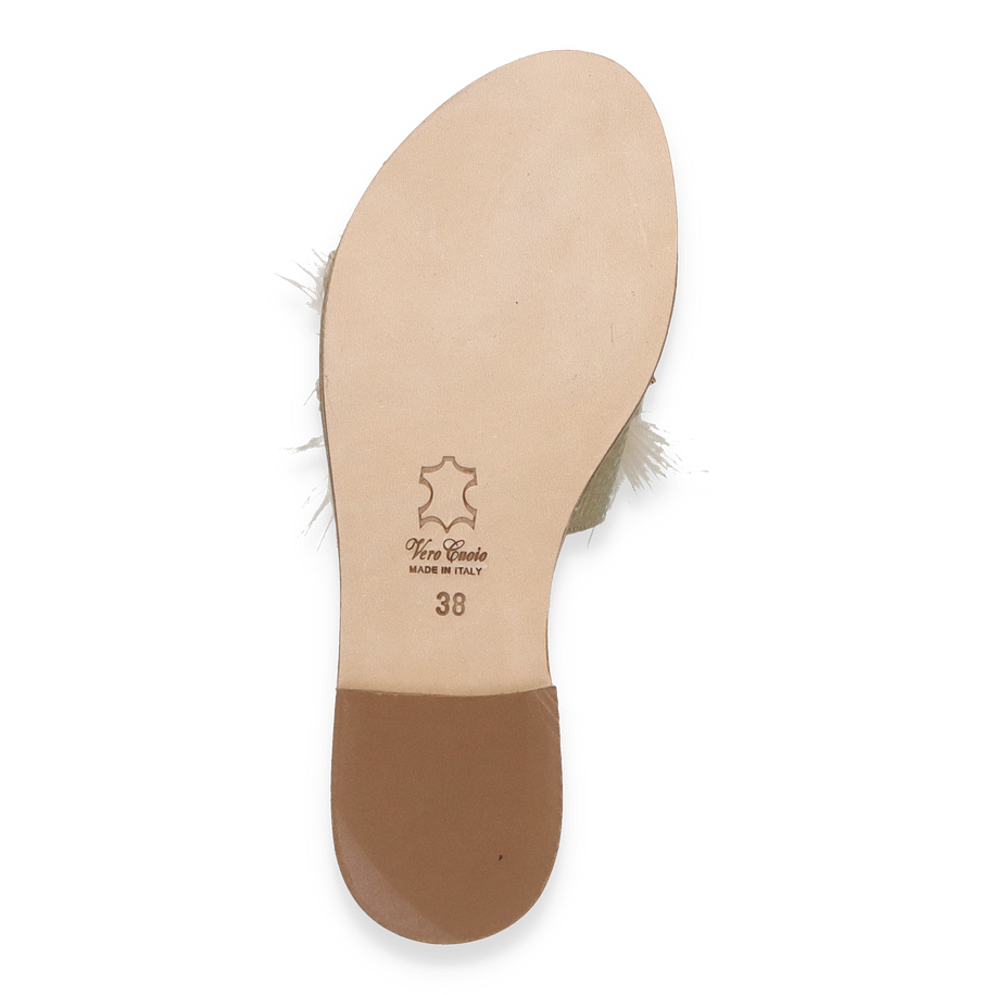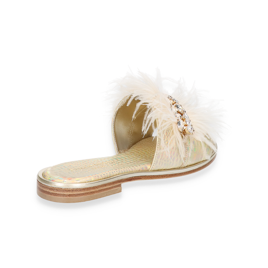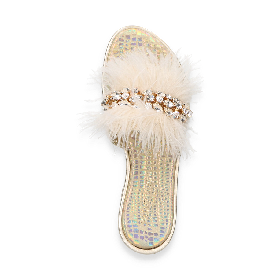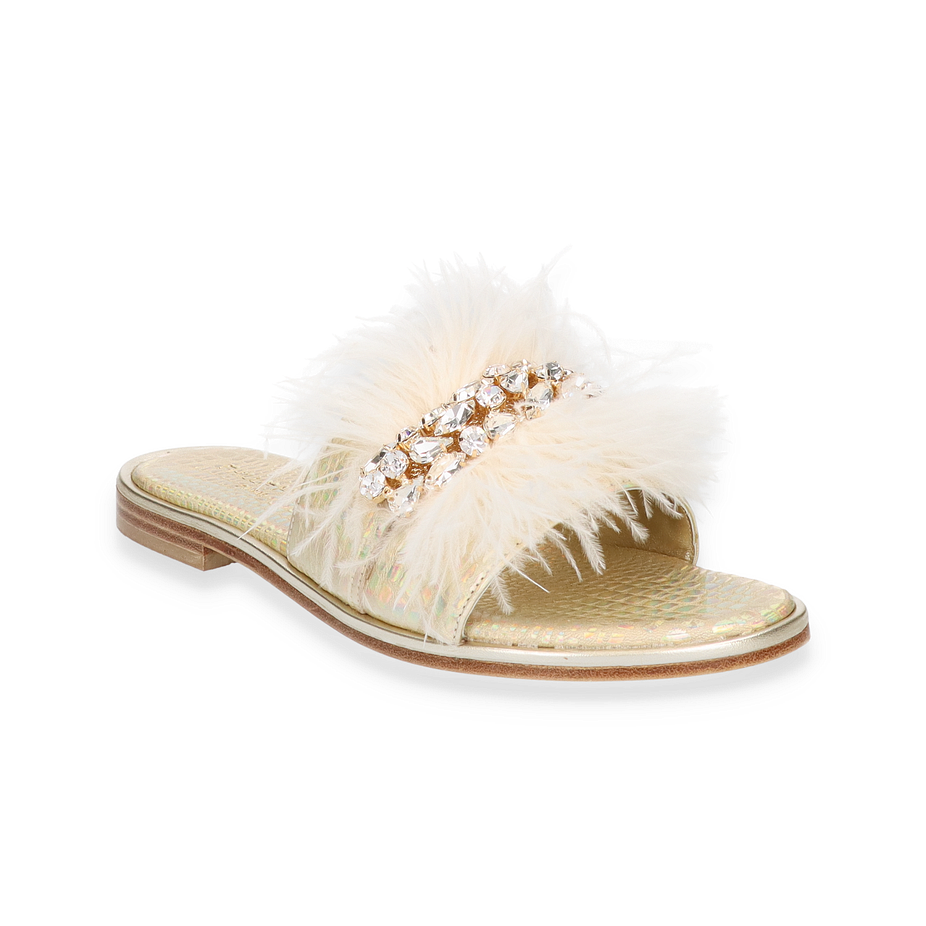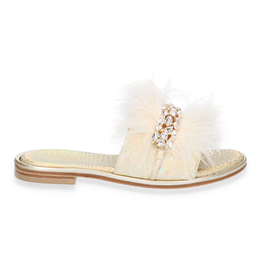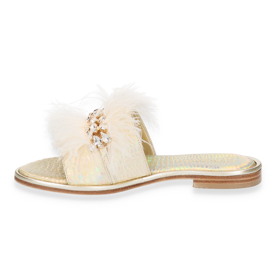Preis inkl. MwSt.Die Phillip Hardy Pantoletten für Damen präsentieren sich in einem eleganten Design, das durch luxuriöse Details besticht. Der weiße Farbton wird durch auffällige Schmucksteine und flauschige Akzente ergänzt, die dem Schuh eine unverwechselbare Note verleihen. Die flache Sohle und der geringe Absatz von 1 cm sorgen für einen stilvollen und dennoch komfortablen Auftritt, ideal für sommerliche Anlässe oder entspannte Spaziergänge.