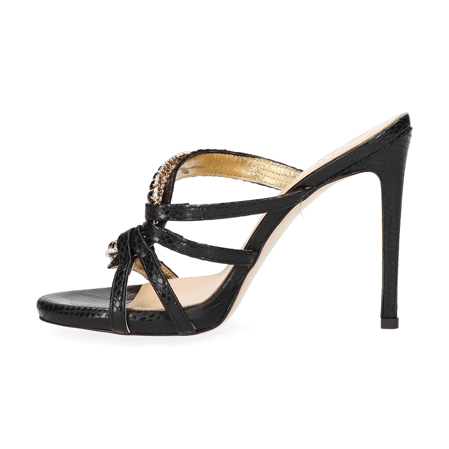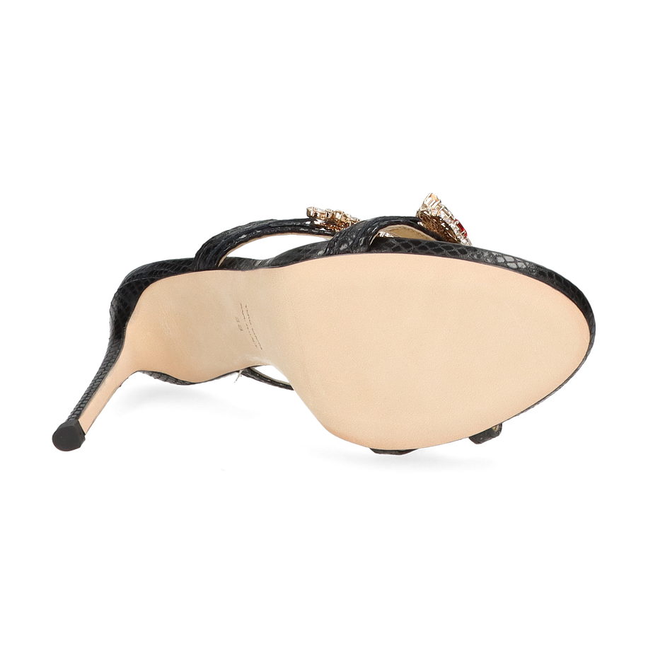 Preis inkl. MwSt.Entdecken Sie die exquisiten Pfihilip Hardy Pantoletten in elegantem Schwarz, die mit ihrem luxuriösen Design für Damen beeindrucken. Die kunstvoll gestalteten Riemen sind mit funkelnden Verzierungen versehen, die einen Hauch von Glamour verleihen. Der 11 cm hohe Absatz sorgt für eine anmutige Silhouette und macht diese Pantoletten zu einem perfekten Begleiter für besondere Anlässe. Die Kombination aus schwarzem Leder und den glitzernden Details schafft einen stilvollen Kontrast, der jedes Outfit aufwertet.