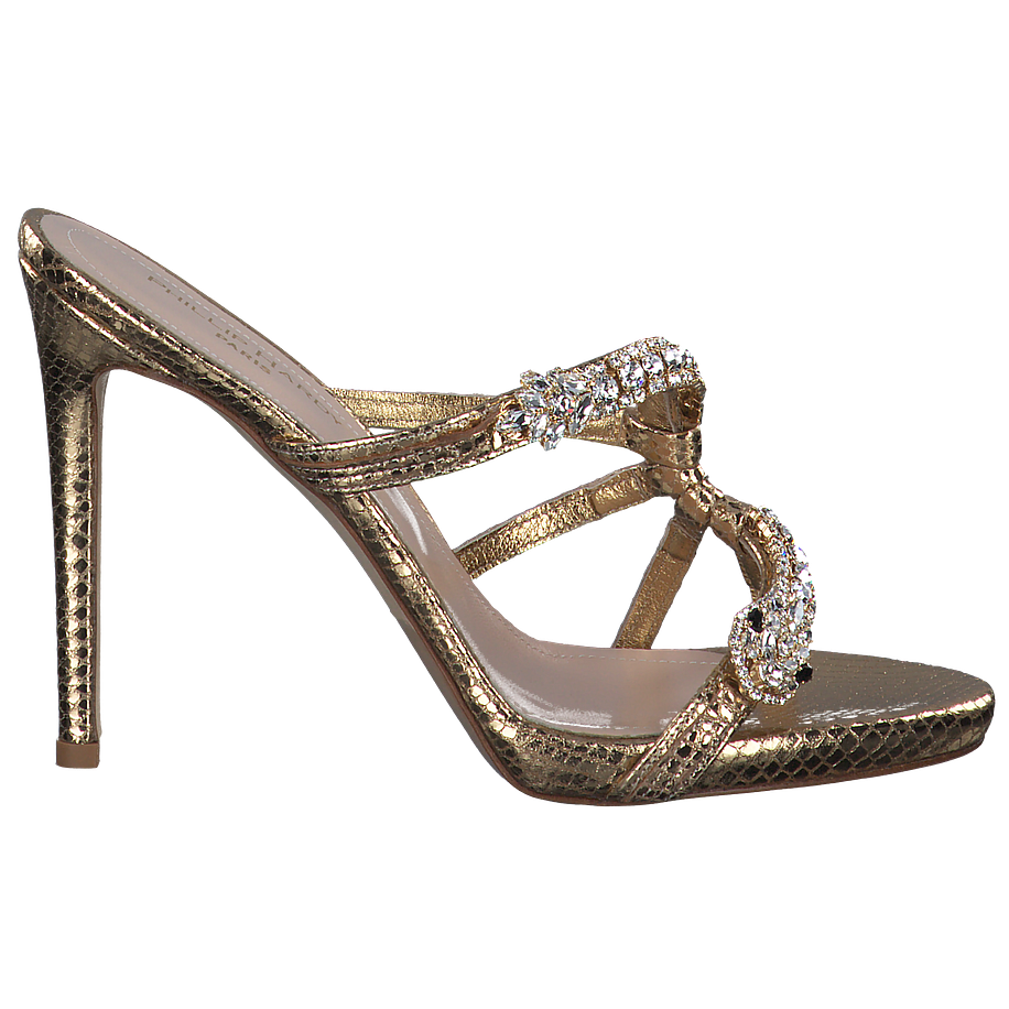 Entdecken Sie die exklusiven Pantoletten von Phillip Hardy für Damen, die Eleganz und Komfort vereinen. Diese luxuriösen Schuhe in glänzendem Gold beeindrucken mit einem auffälligen Schlangen Design, das jedem Outfit eine besondere Note verleiht. Der 12 cm hohe Absatz sorgt für eine elegante Silhouette und verlängert optisch das Bein. Das Obermaterial und die Innensohle bestehen aus hochwertigem Leder, das für ein angenehmes Tragegefühl und Langlebigkeit sorgt. Die Ledersohle bietet zusätzliche Stabilität und Komfort. Diese Pantoletten sind die perfekte Wahl für stilbewusste Frauen, die Wert auf Qualität und Design legen. Ideal für besondere Anlässe oder um Ihrem Alltagslook einen Hauch von Luxus zu verleihen.