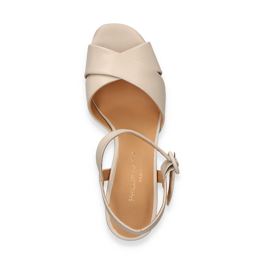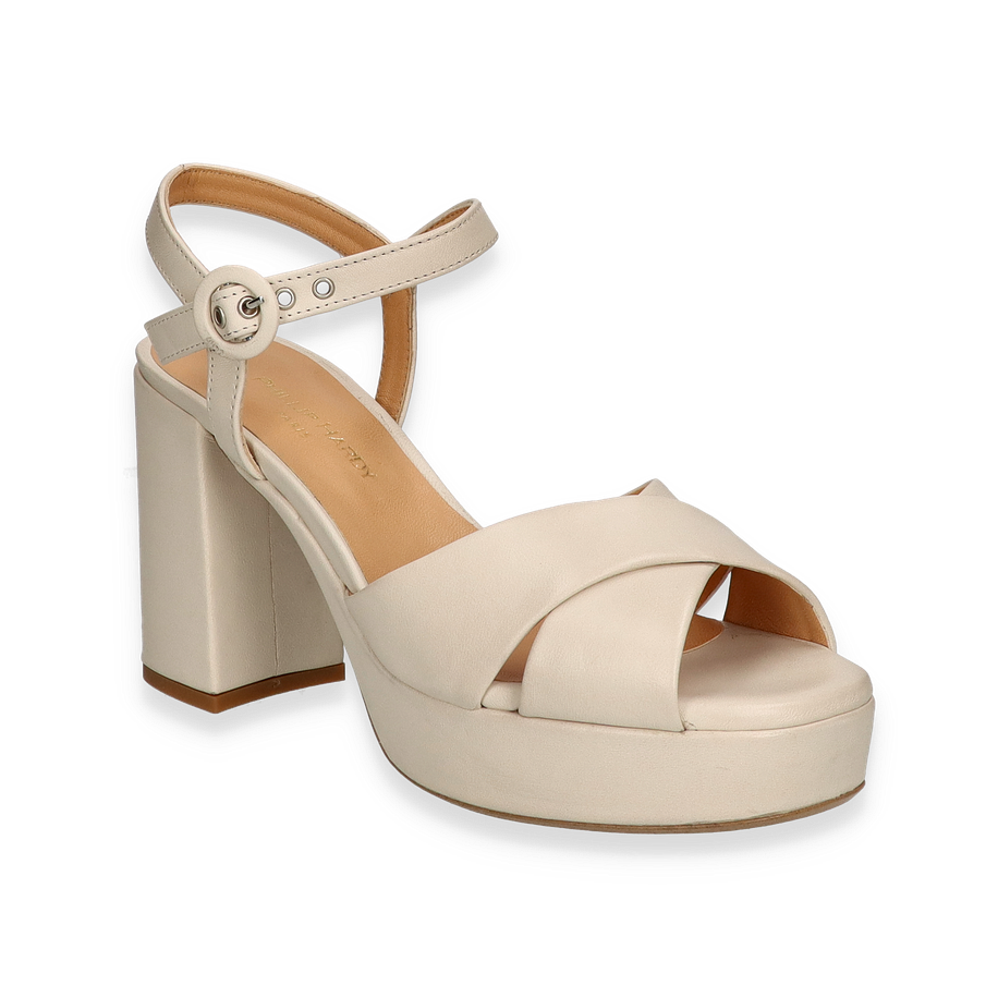 Preis inkl. MwSt.Die Phillip Hardy Plateau-Sandalen in elegantem Beige vereinen Stil und Komfort auf eindrucksvolle Weise. Mit einem markanten 9 cm hohen Absatz und einem raffinierten Design sind diese Sandalen ein echter Hingucker für Damen. Der überkreuzte Riemen verleiht dem Schuh eine moderne Note, während der verstellbare Knöchelriemen für optimalen Halt sorgt. Die hochwertige Verarbeitung und das zeitlose Design machen diese Sandalen zu einem idealen Begleiter für besondere Anlässe oder stilvolle Alltagsoutfits.