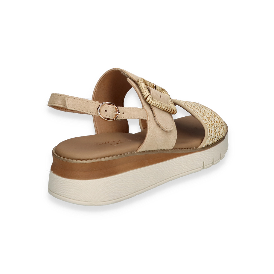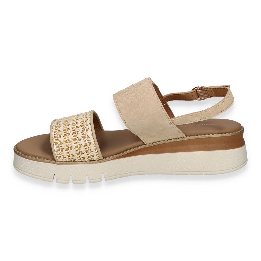 Preis inkl. MwSt.Entdecken Sie die eleganten Plateau-Sandalen von Phillip Hardy für Damen, die in einem stilvollen Beige-Ton gehalten sind. Diese Sandalen zeichnen sich durch ihr raffiniertes Design aus, das eine harmonische Kombination aus Leder und geflochtenen Details bietet. Der verstellbare Riemen mit dekorativer Schnalle sorgt für eine perfekte Passform und verleiht dem Schuh einen Hauch von Raffinesse. Der 4 cm hohe Absatz bietet eine angenehme Höhe, die sowohl Komfort als auch Stil vereint.