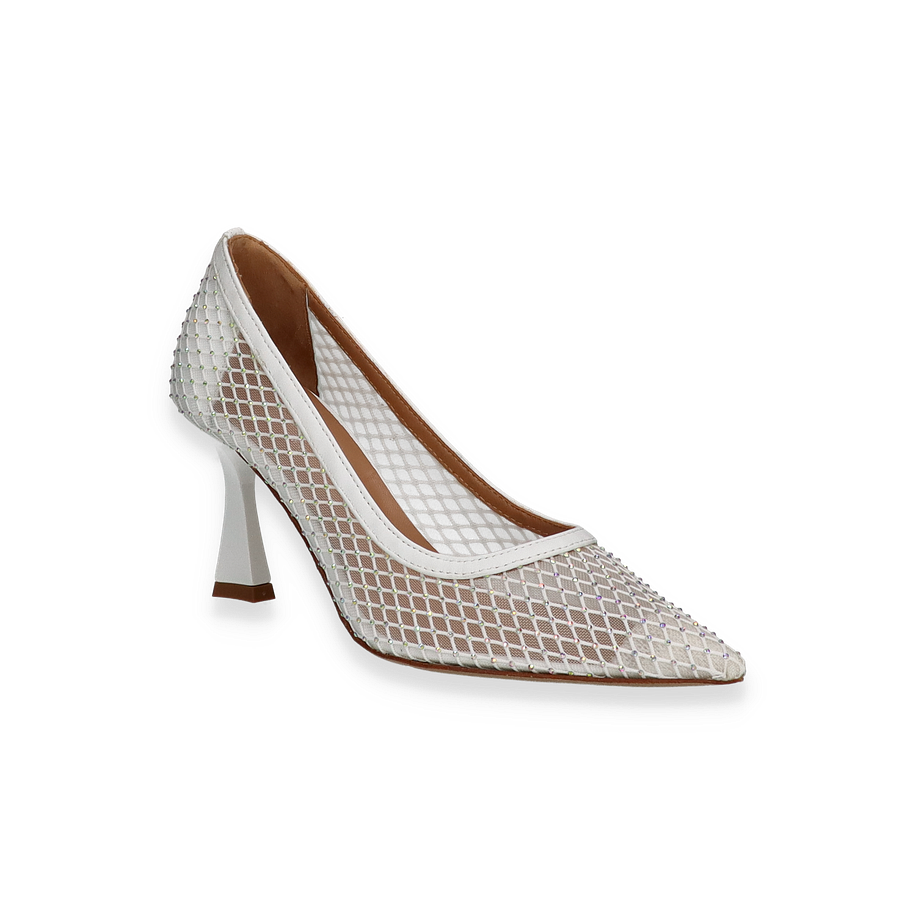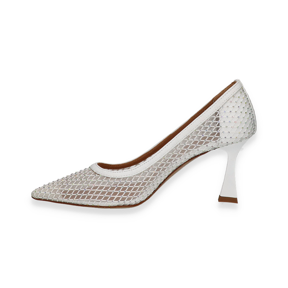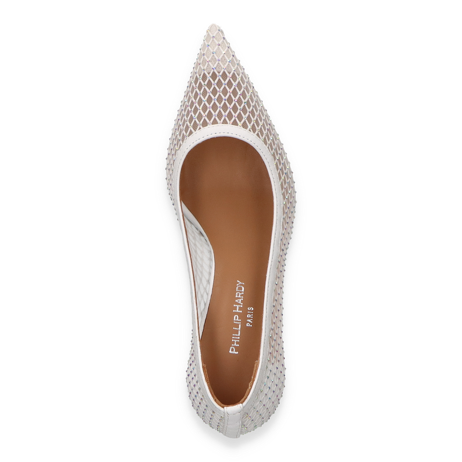 Entdecken Sie die eleganten Klassischen Pumps von Phillip Hardy, die durch ihr raffiniertes Design und die exquisite Verarbeitung bestechen. Diese weißen Pumps für Damen sind mit einem einzigartigen Netzmuster versehen, das durch bunte Glitzersteine akzentuiert wird und jedem Outfit einen Hauch von Glamour verleiht. Der 8 cm hohe Absatz sorgt für eine anmutige Silhouette und ist ideal für besondere Anlässe oder elegante Abendveranstaltungen.
