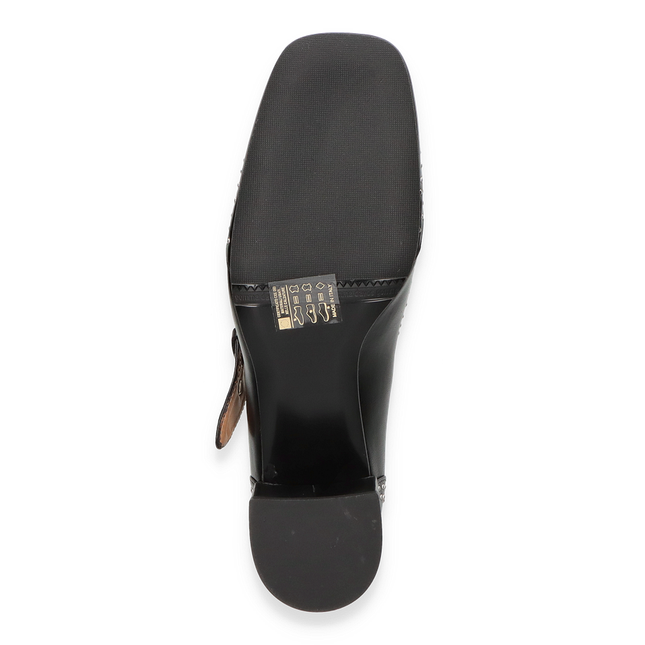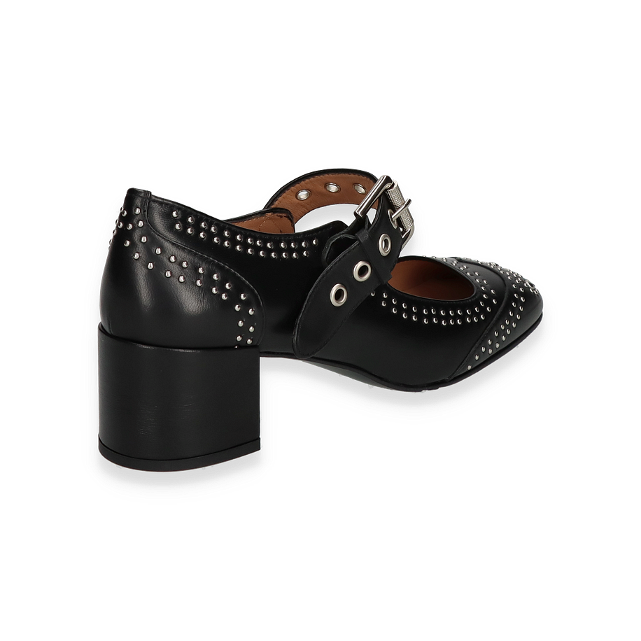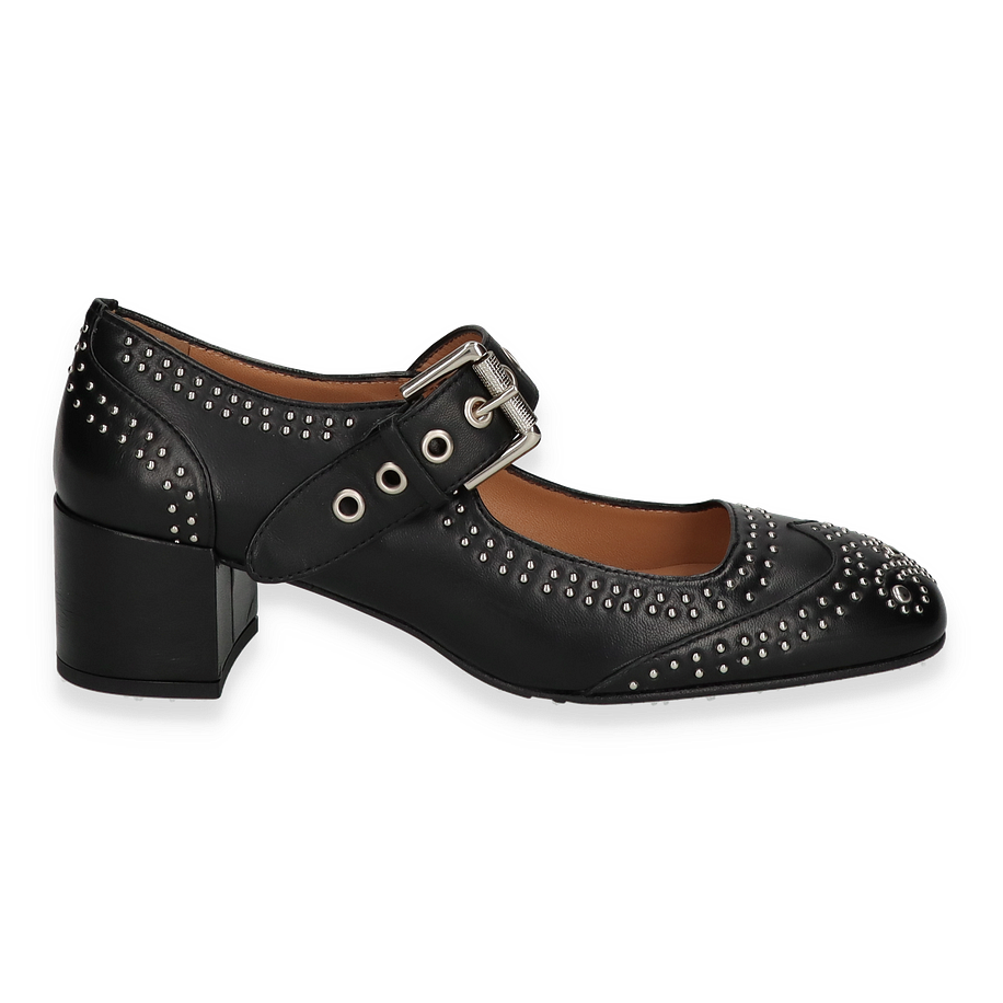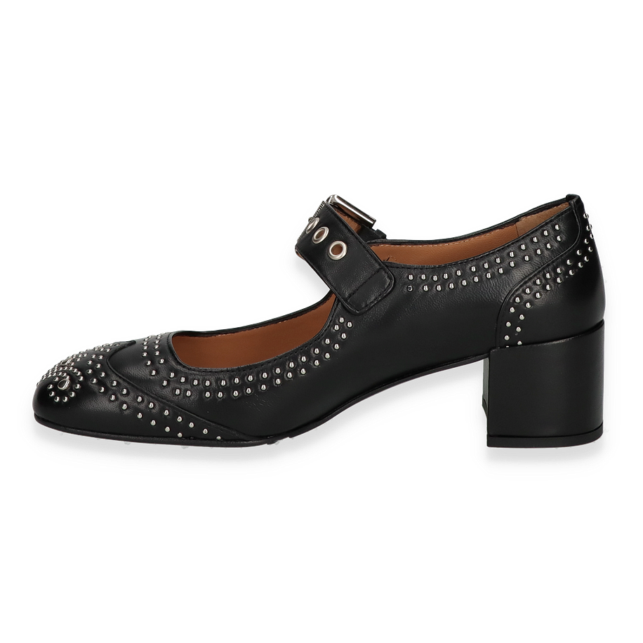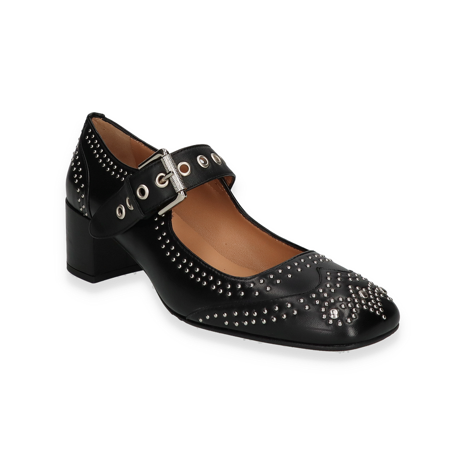 Preis inkl. MwSt.Entdecken Sie die eleganten Riemchenpumps für Damen, die mit ihrem einzigartigen Design und hochwertigen Materialien überzeugen. Diese Pumps präsentieren sich in einem klassischen Schwarz, verziert mit stilvollen Nieten, die dem Schuh einen modernen und zugleich zeitlosen Look verleihen. Der breite Blockabsatz sorgt für Stabilität und Komfort, während das verstellbare Riemchen mit einer markanten Schnalle für eine perfekte Passform sorgt. Ideal für besondere Anlässe oder als stilvolles Highlight im Alltag.