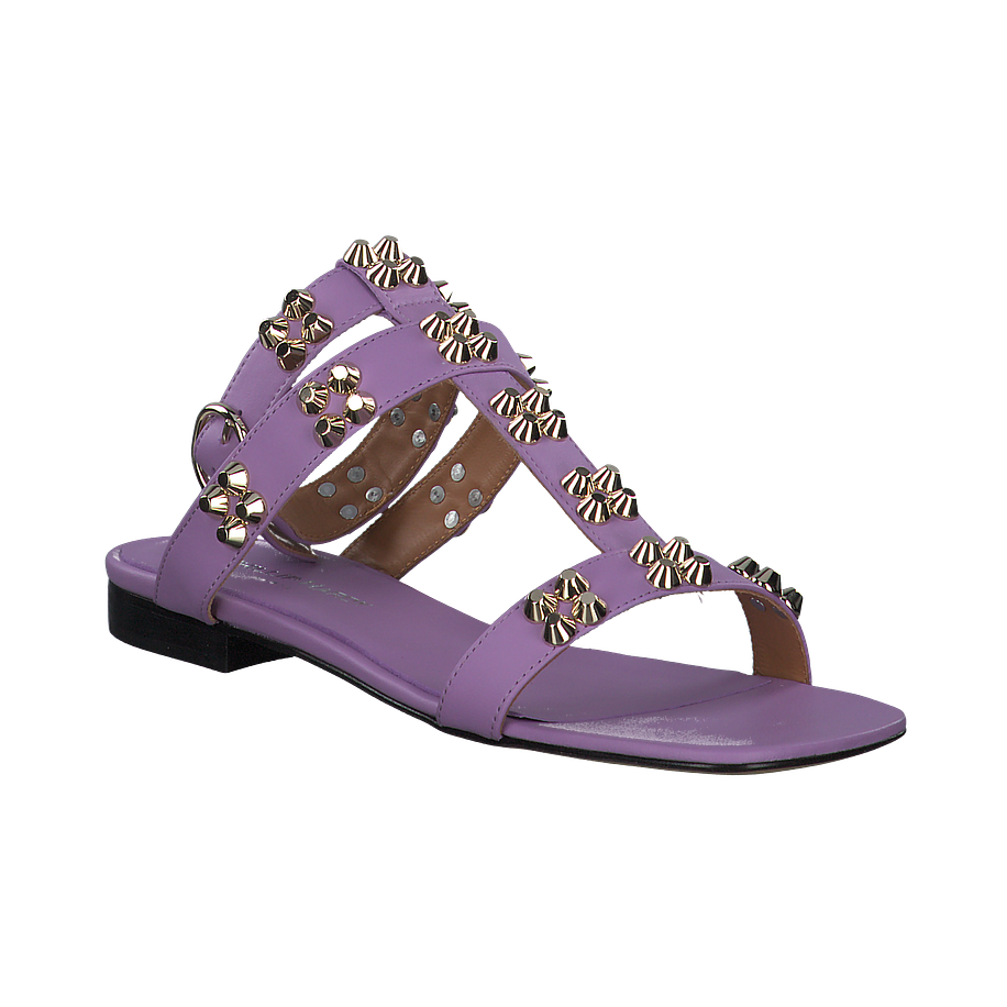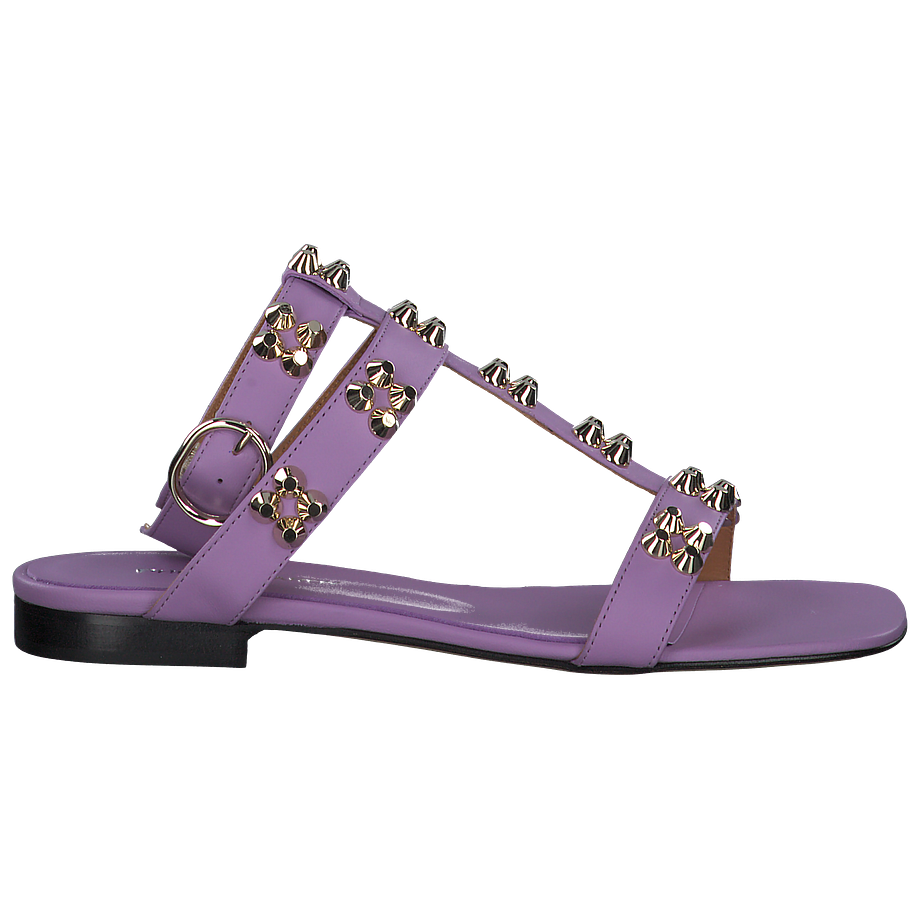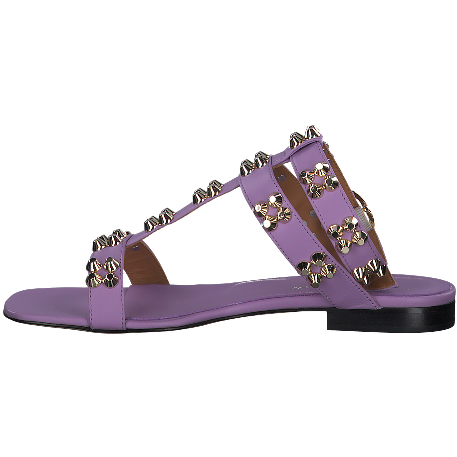 Sie möchten Ihren schlichten Alltasgslooks mehr Farbe und Pep verleihen? Dann werden Sie sich über diese tollen Phillip Hardy Sandalen für Damen sehr freuen! Die schicken Damenschuhe sind aus einem feinen Leder in einem farbenfrohen Lila gefertigt, welches mit goldfarbenen Nieten verziert einen aufregenden und modernen Look erzeugt. Die breiteren Riemchen versprechen einen angenehmen Tragekomfort und einen sicheren Halt. Dafür sorgen auch die praktischen Schnallen aus goldfarbenem Metall, mittels welchen sich die Riemchenbreite verstellen lässt für den optimalen Sitz der lila Phillip Hardy Sandalen.