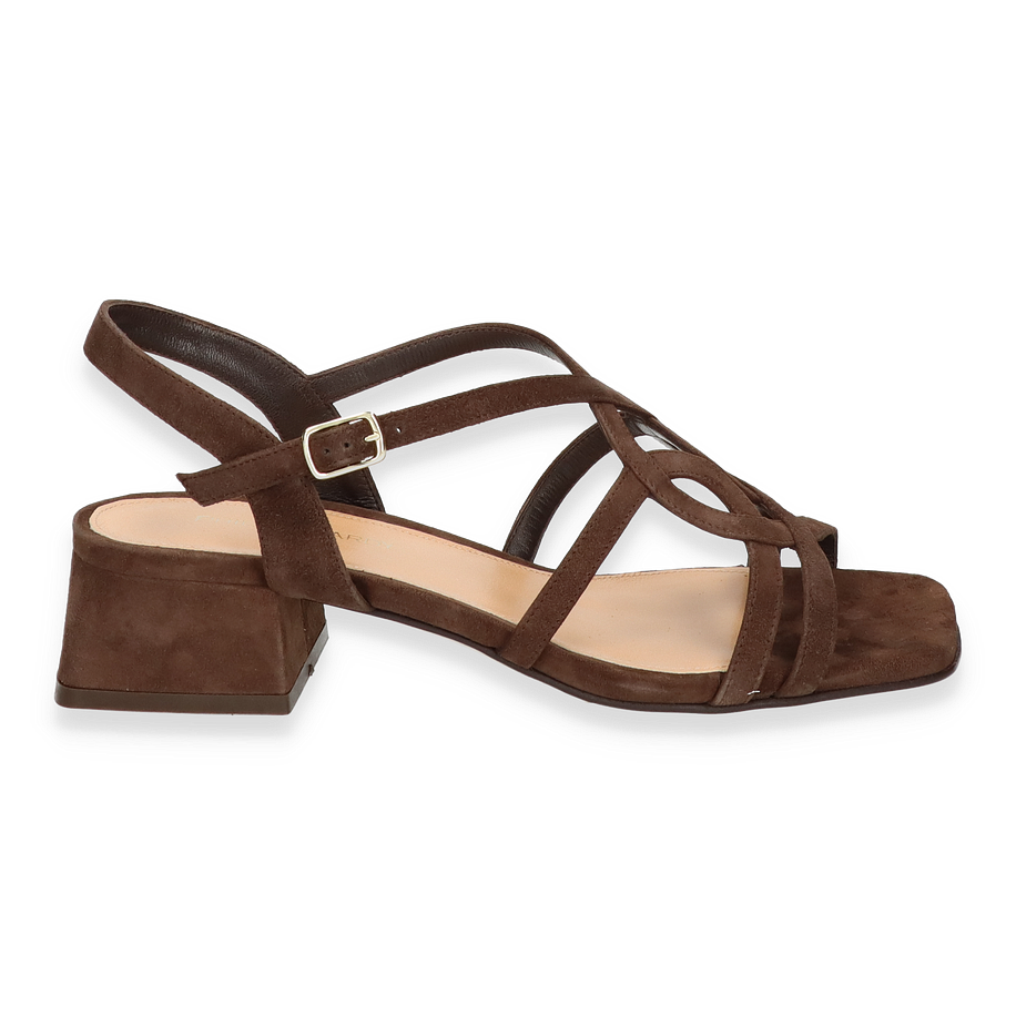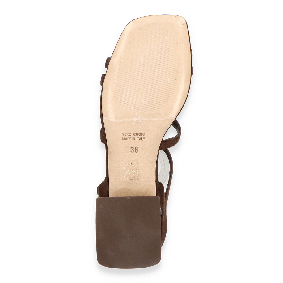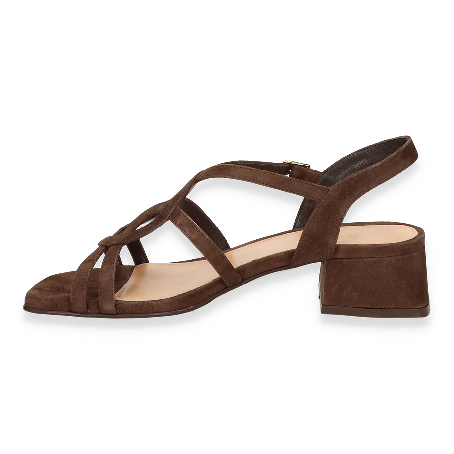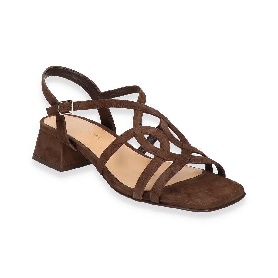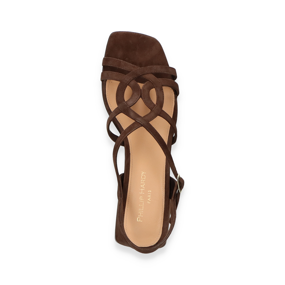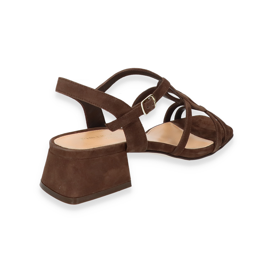 Preis inkl. MwSt.Die Phillip Hardy Sandalen für Damen präsentieren sich in einem eleganten Dunkelbraun, das jedem Outfit einen Hauch von Raffinesse verleiht. Der kunstvoll gestaltete Riemen und der stabile Blockabsatz von 4,5 cm Höhe sorgen für einen stilvollen und dennoch komfortablen Auftritt. Diese Sandalen sind ideal für besondere Anlässe oder einen eleganten Alltagslook. Die offene Zehenpartie und der verstellbare Knöchelriemen bieten sowohl Stil als auch Funktionalität.