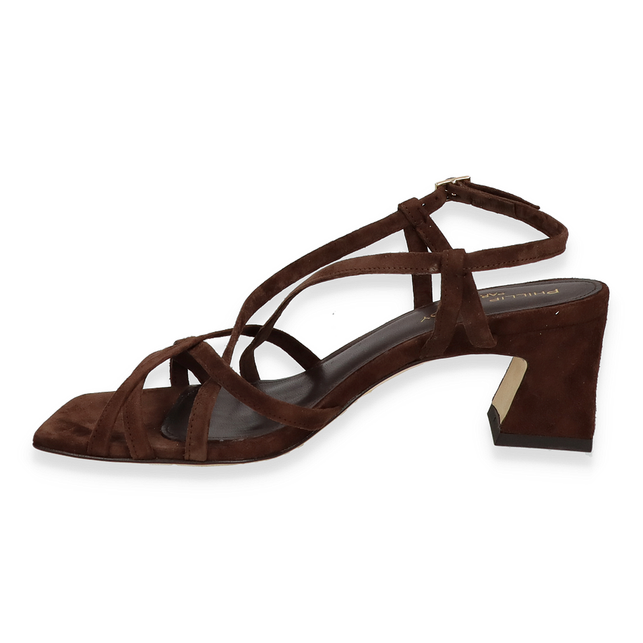 Preis inkl. MwSt.Die Phillip Hardy Sandaletten in Dunkelbraun vereinen Eleganz und Komfort auf beeindruckende Weise. Diese Sandaletten für Damen zeichnen sich durch ihr raffiniertes Design aus, das durch zarte Riemen und eine stilvolle Schnalle akzentuiert wird. Der 5,5 cm hohe Absatz verleiht der Trägerin eine anmutige Silhouette, während die hochwertige Verarbeitung aus Leder ein luxuriöses Tragegefühl garantiert. Diese Sandaletten sind die perfekte Wahl für anspruchsvolle Anlässe und verleihen jedem Outfit eine edle Note.