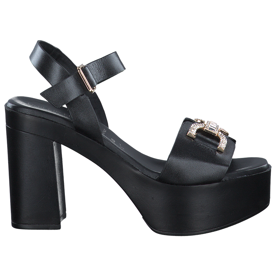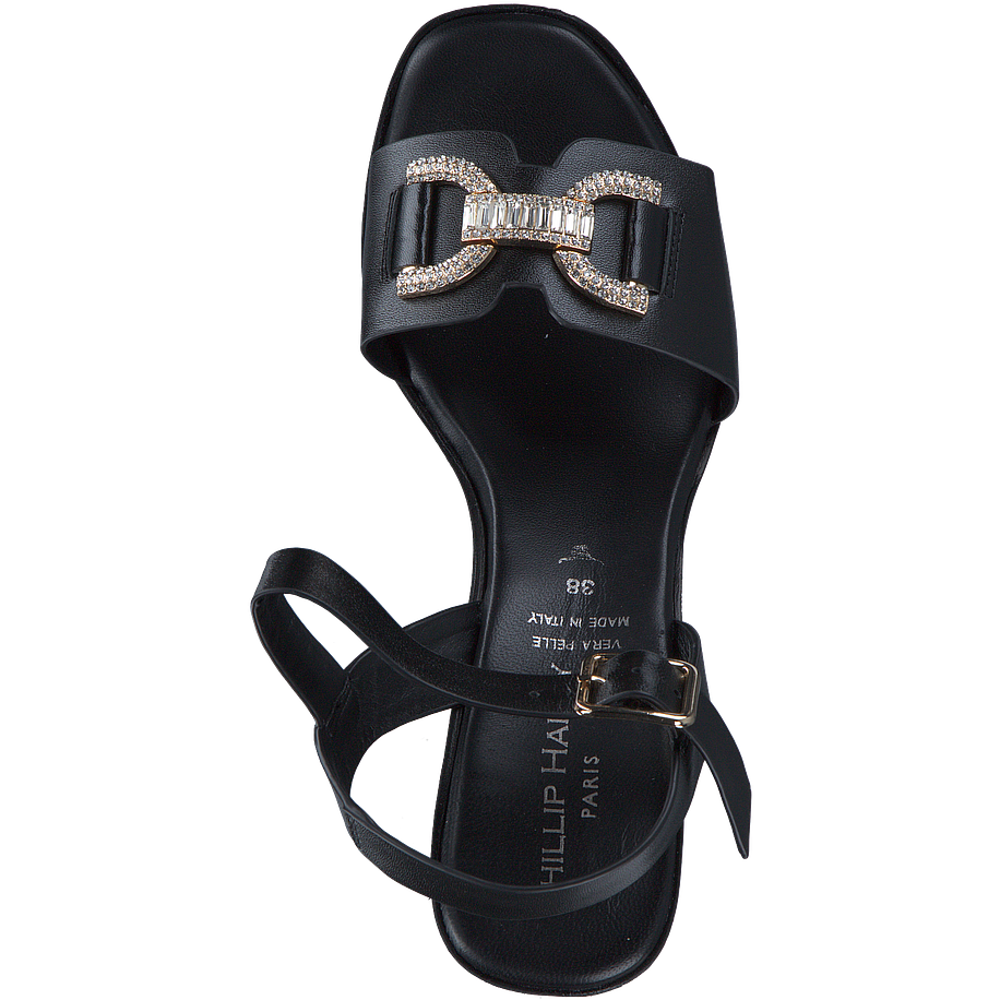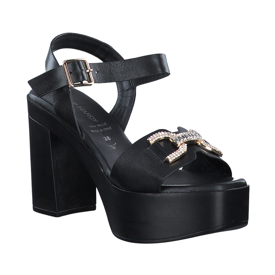Erleben Sie den ultimativen Komfort und Stil mit diesen Phillip Hardy Sandaletten für Damen. Sie sind in einem eleganten Schwarz gehalten und bestechen durch eine goldene Schnalle mit Strasssteinen, die einen Hauch von Glamour verleiht. Das Obermaterial, das Innenfutter und die Innensohle sind alle aus hochwertigem Leder gefertigt, was für eine luxuriöse Haptik und Langlebigkeit sorgt. Die Sohle aus Gummi und Leder bietet hervorragende Traktion und Haltbarkeit. Mit einer Absatzhöhe von 9 cm und einer Plateauhöhe von 4,5 cm verleihen diese Schuhe Ihnen zusätzliche Höhe, ohne auf Komfort zu verzichten.