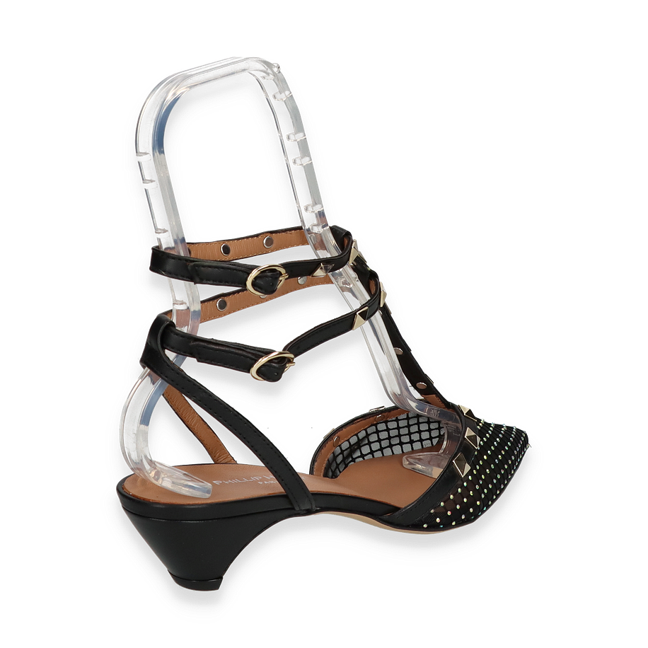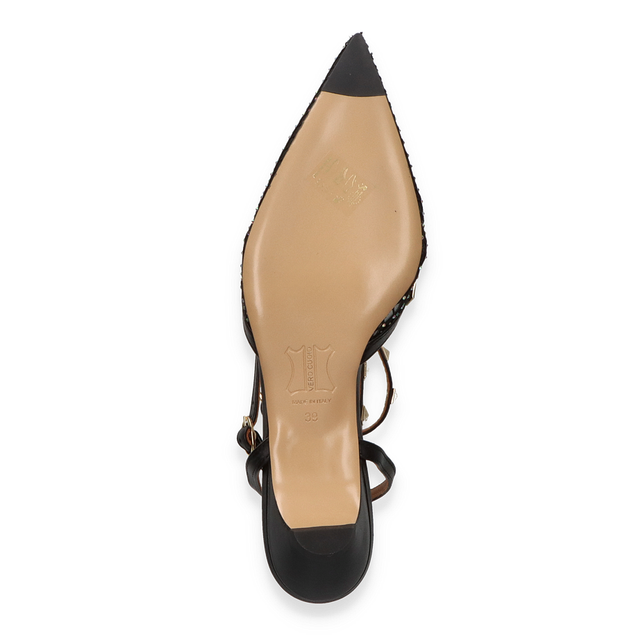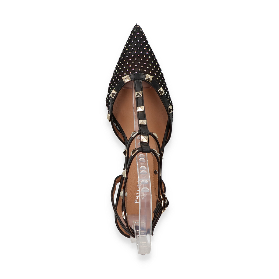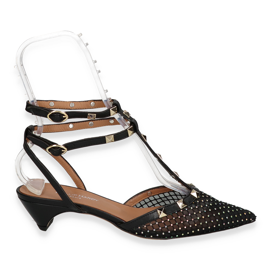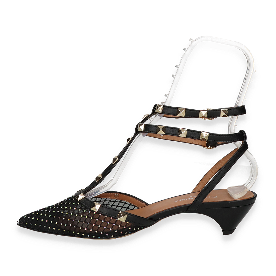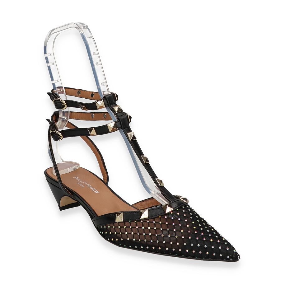 Die Phillip Hardy Slingpumps in elegantem Schwarz vereinen Stil und Komfort auf höchstem Niveau. Diese für Damen entworfenen Schuhe bestechen durch ihr raffiniertes Design mit funkelnden Details und einem spitzen Zehenbereich. Die Kombination aus Leder und Textil im Obermaterial verleiht den Schuhen eine luxuriöse Optik, während die dekorativen Nieten und die feinen Riemen für einen Hauch von Glamour sorgen. Der 3,5 cm hohe Absatz bietet eine perfekte Balance zwischen Eleganz und Tragekomfort, ideal für besondere Anlässe oder einen stilvollen Auftritt im Alltag.