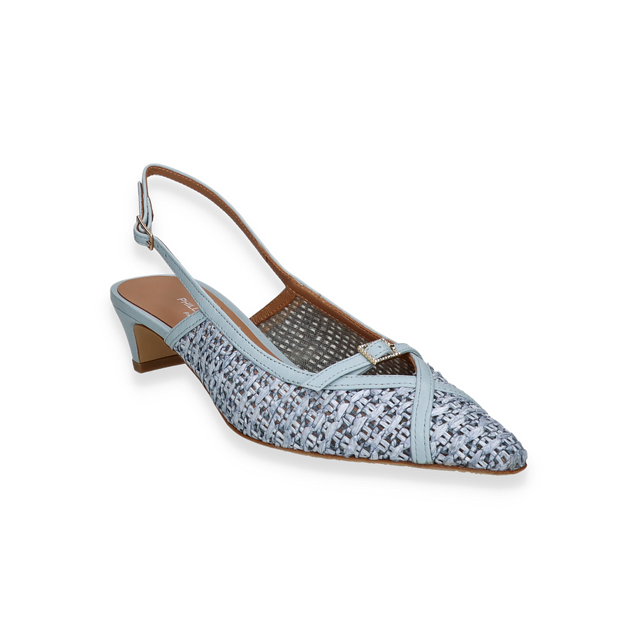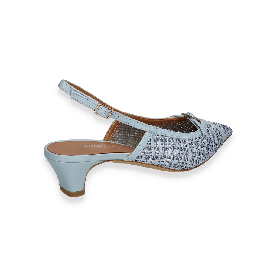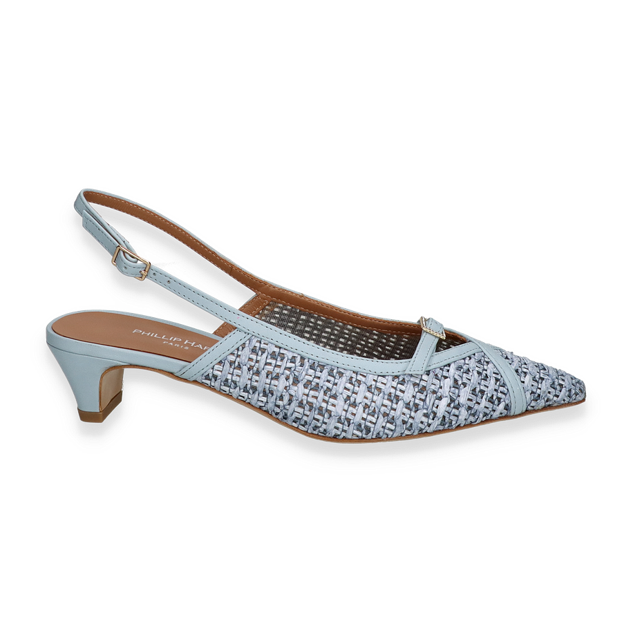 Preis inkl. MwSt.Die eleganten Slingpumps von Phillip Hardy in einem zarten Blau vereinen Stil und Komfort für Damen. Das raffinierte Design besticht durch ein kunstvolles Flechtmuster aus Leder und Textil, das den Schuhen eine einzigartige Textur verleiht. Der schmale Riemen mit dezenter Schnalle sorgt für einen sicheren Halt und unterstreicht die feminine Silhouette. Mit einer Absatzhöhe von 3,5 cm bieten diese Schuhe eine angenehme Höhe, die sowohl für den Alltag als auch für besondere Anlässe geeignet ist.