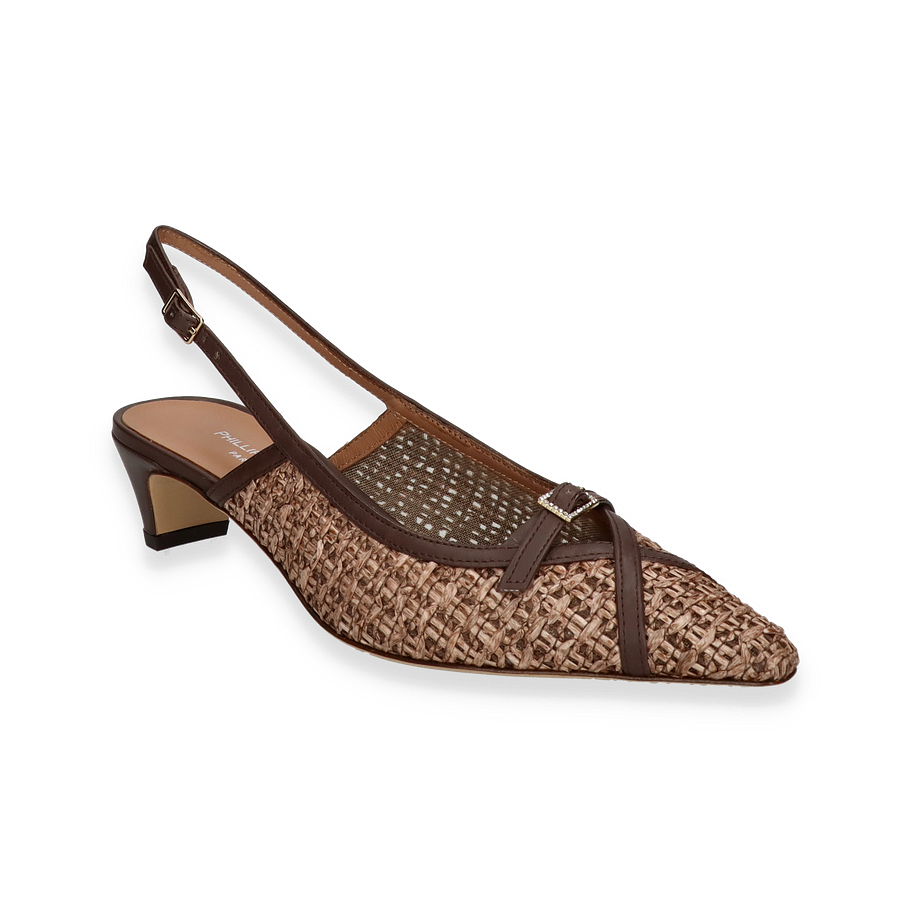 Preis inkl. MwSt.Die Phillip Hardy Slingpumps in elegantem Braun vereinen zeitlose Eleganz mit modernem Design. Das Obermaterial aus Leder und Textil verleiht den Schuhen eine raffinierte Textur, während der zarte Riemen mit einer feinen Schnalle für sicheren Halt sorgt. Der 3,5 cm hohe Absatz bietet eine angenehme Höhe, die sowohl Komfort als auch Stil garantiert. Diese Slingpumps sind die perfekte Wahl für Damen, die Wert auf stilvolle Details und hochwertige Verarbeitung legen.