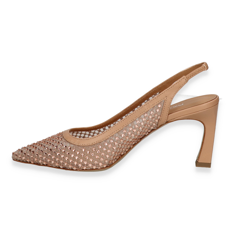 Die eleganten Slingpumps von Phillip Hardy in Beige verkörpern zeitlose Raffinesse und Stil. Das Design besticht durch ein filigranes, mit zarten Details versehenes Obermaterial aus Leder und sonstigem Material, das in einem harmonischen Zusammenspiel von Texturen und Farben erstrahlt. Der spitz zulaufende Schnitt und der 8,5 cm hohe Absatz verleihen dem Schuh eine feminine Silhouette, die sowohl für formelle Anlässe als auch für elegante Abende geeignet ist. Die offene Fersenpartie mit einem schmalen Riemen sorgt für einen sicheren Halt und unterstreicht die grazile Ästhetik.