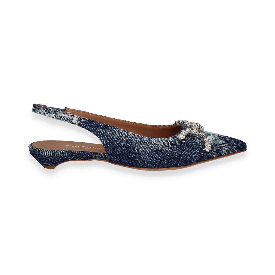 Entdecken Sie die eleganten Slingpumps von Phillip Hardy in einem modischen Jeans-Look. Diese für Damen entworfenen Schuhe kombinieren Stil und Komfort auf einzigartige Weise. Das jeansblaue Design wird durch funkelnde Schmuckdetails akzentuiert, die jedem Outfit einen Hauch von Glamour verleihen. Die spitze Form und der dezente Absatz von 2 cm sorgen für eine feminine Silhouette, die sowohl im Büro als auch bei besonderen Anlässen überzeugt.