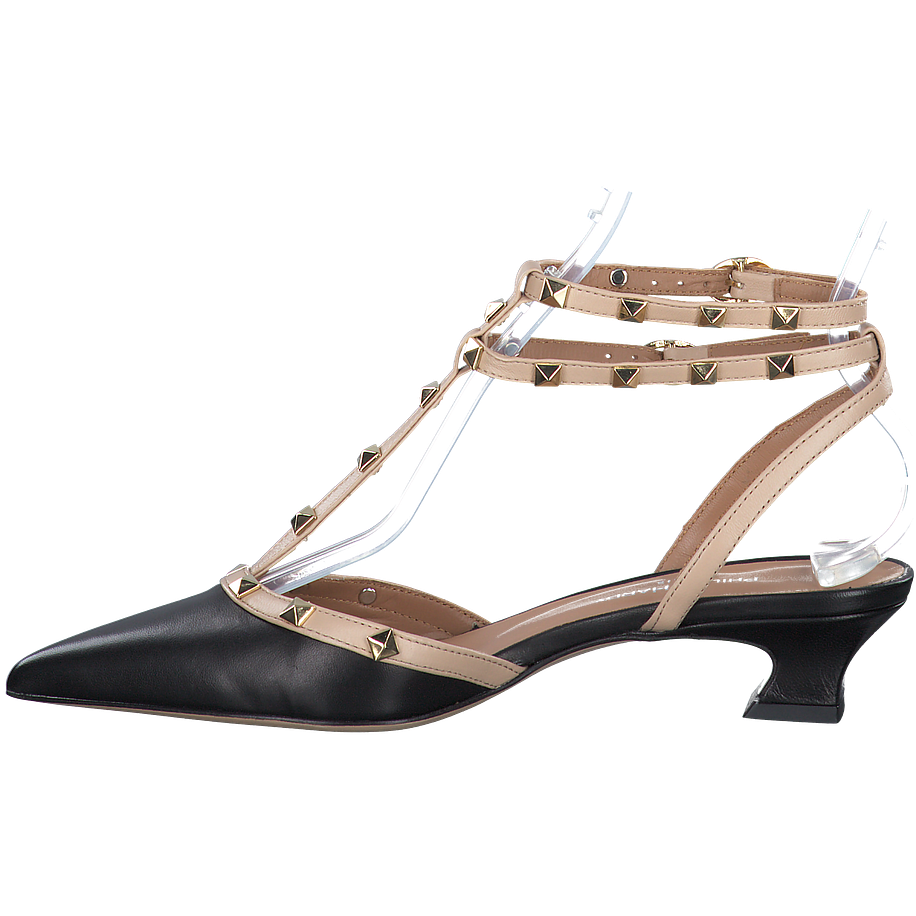 Entdecken Sie die elegante Phillip Hardy Slingpumps für Damen in klassischem Schwarz. Hergestellt aus hochwertigem Leder, bietet dieser Schuh sowohl Komfort als auch Stil. Die Innensohle und das Futter sind ebenfalls aus Leder, was für ein luxuriöses Tragegefühl sorgt. Mit einer Absatzhöhe von 3,5 cm verleiht dieser Schuh Ihnen eine dezente Erhöhung, ohne dabei den Komfort zu beeinträchtigen. Ein besonderes Highlight sind die goldene Nieten, die einen Hauch von Glamour hinzufügen. Die Sohle aus Leder sorgt für Langlebigkeit und Qualität. Ein Must-Have für jede stilbewusste Frau.