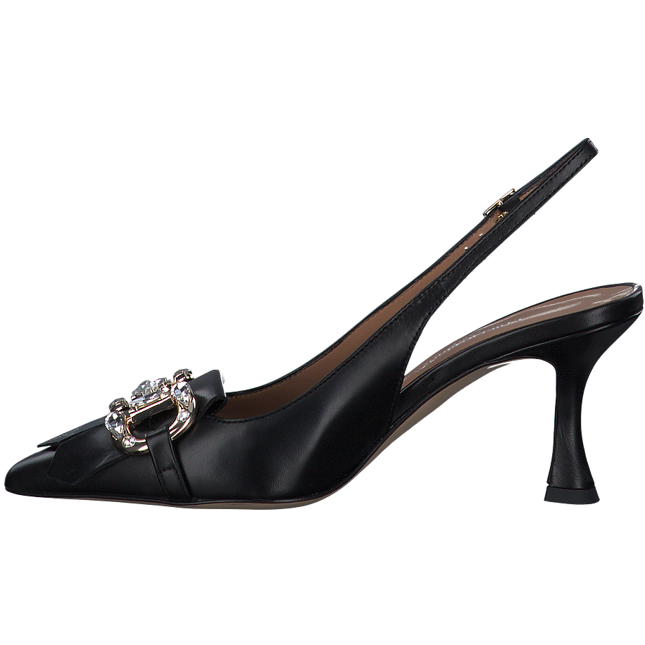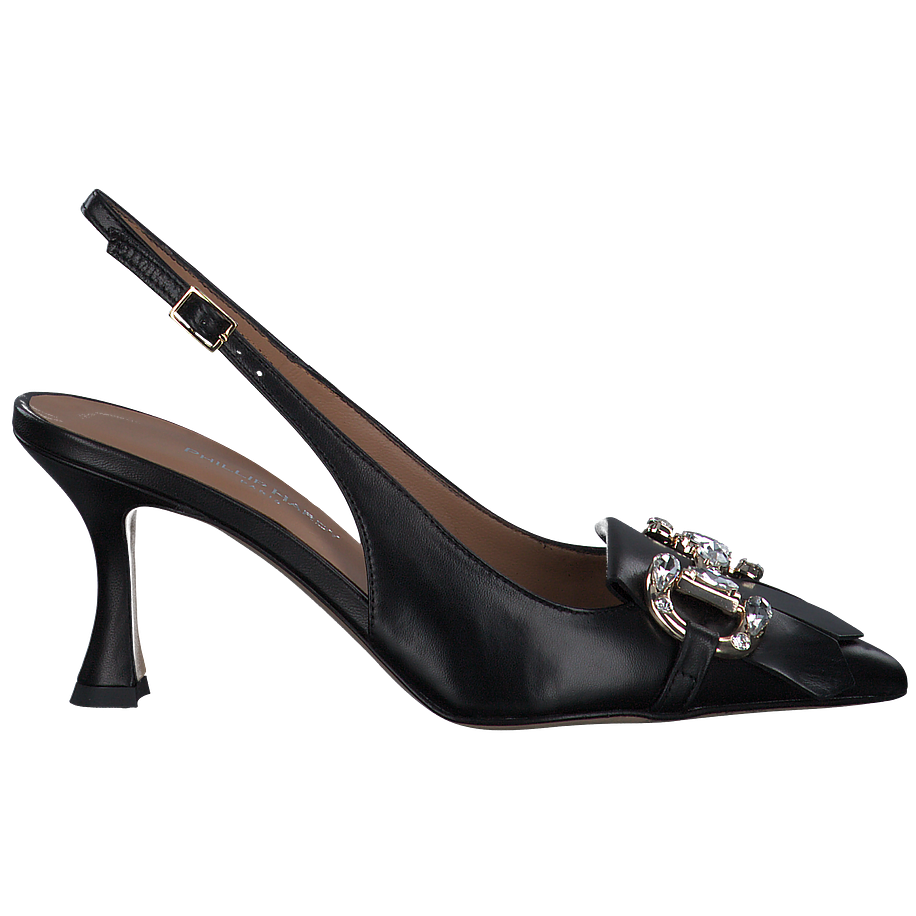 Preis inkl. MwSt.Entdecken Sie die eleganten Slingpumps von Phillip Hardy, perfekt für Damen, die Wert auf Stil und Komfort legen. Diese schicken Schuhe in klassischem Schwarz sind aus hochwertigem Leder gefertigt, sowohl das Obermaterial als auch das Futter und die Sohle. Die Innensohle aus Leder sorgt für zusätzlichen Komfort. Mit einer Absatzhöhe von 7 cm verleihen diese spitzen Pumps Ihrer Silhouette eine ansprechende Höhe. Ein besonderes Highlight ist die Zierschnalle, verziert mit funkelnden Schmucksteinen, die jedem Outfit einen Hauch von Glamour verleiht. Wählen Sie Phillip Hardy für unvergleichliche Qualität und zeitlosen Stil.