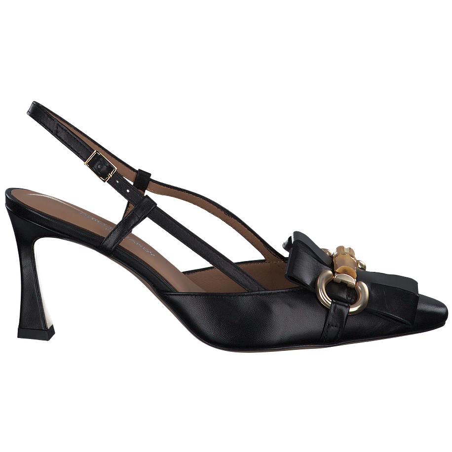 Entdecken Sie die eleganten Slingpumps von Phillip Hardy für Damen. Diese Schuhe in schwarzem Leder strahlen eine zeitlose Eleganz aus. Sie verfügen über eine auffällige Schnalle aus verschiedenen Materialien, die einen einzigartigen Akzent setzt. Mit einer Absatzhöhe von 7 cm bieten sie einen angenehmen Tragekomfort. Das Obermaterial, das Innenfutter und die Sohle sind aus hochwertigem Leder gefertigt, was für eine hohe Langlebigkeit und ein angenehmes Fußklima sorgt. Die Innensohle aus Leder rundet das komfortable Trageerlebnis ab.