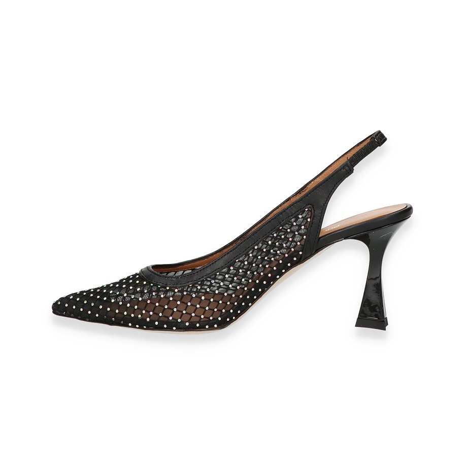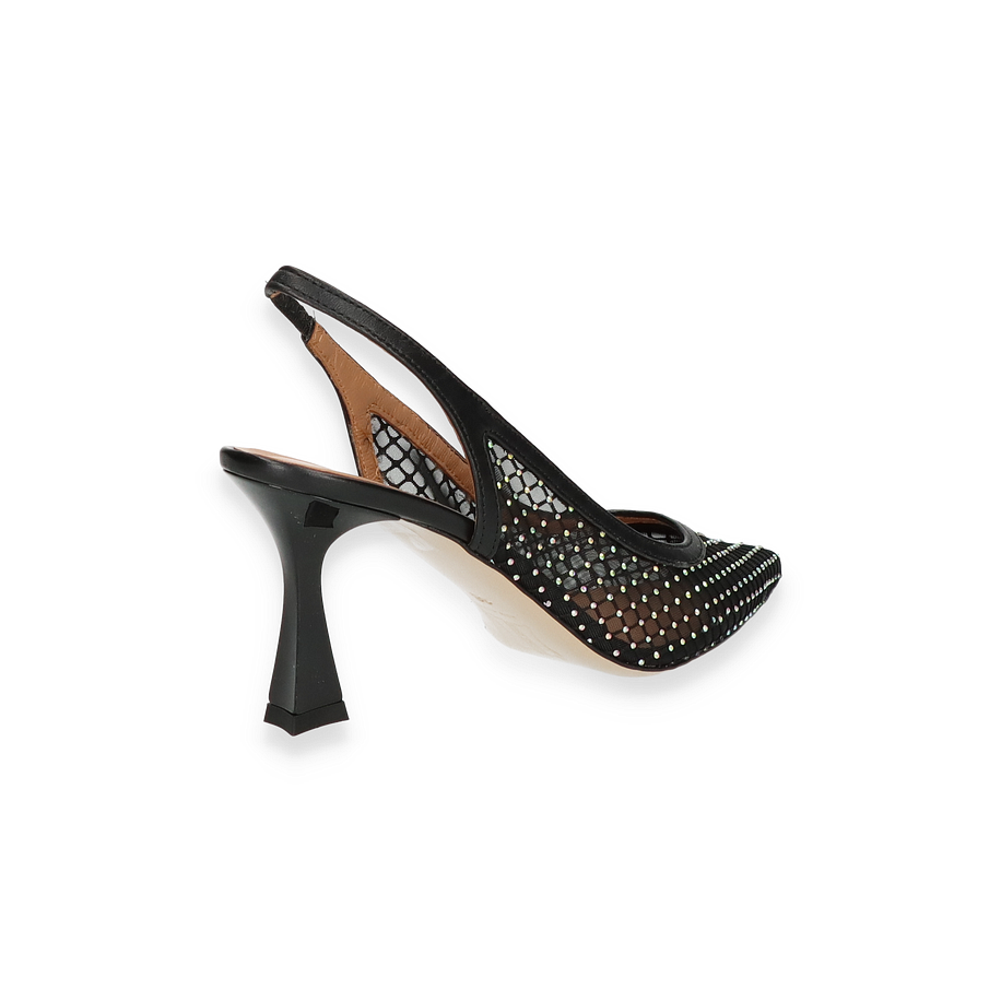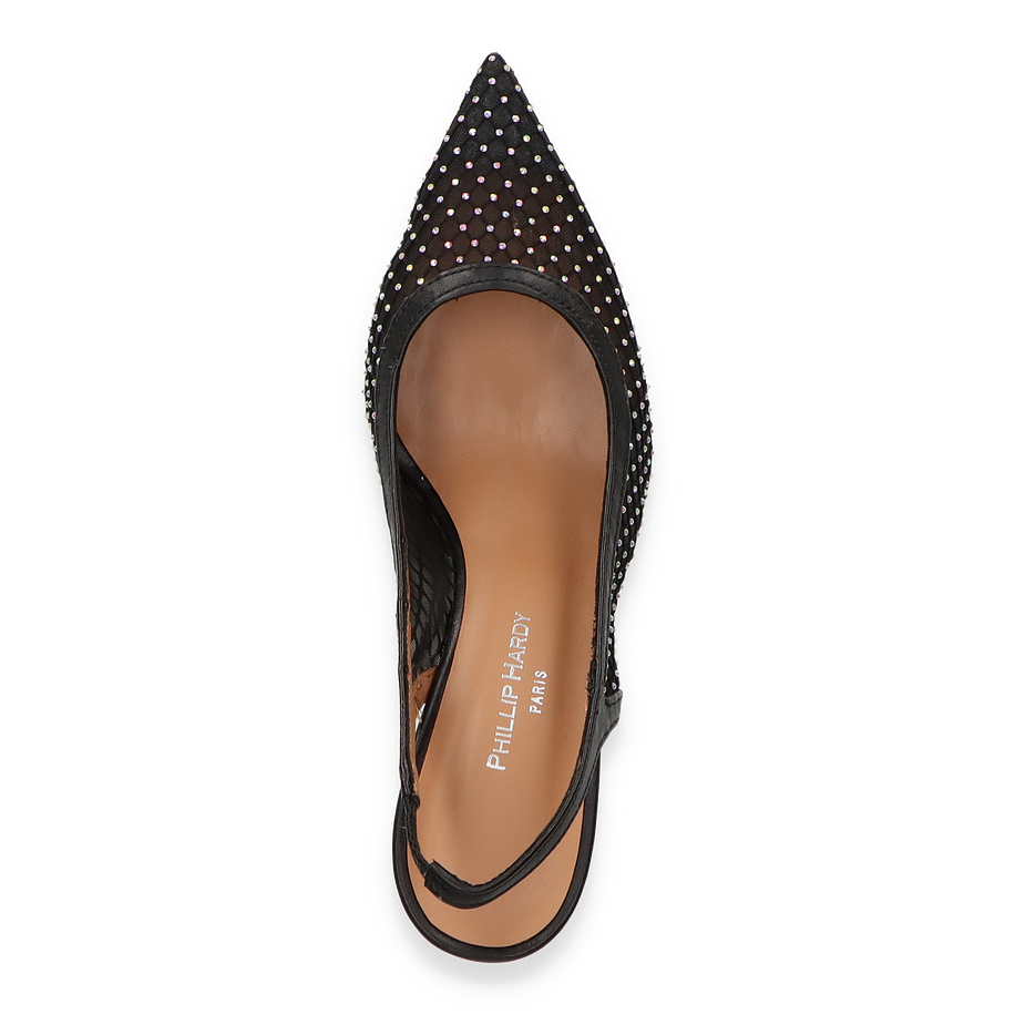 Die Phillip Hardy Slingpumps für Damen präsentieren sich in elegantem Schwarz und sind mit funkelnden, bunten Glitzersteinen verziert, die jedem Outfit einen Hauch von Glamour verleihen. Der raffinierte Schnitt und die edle Verarbeitung machen diese Schuhe zu einem echten Blickfang. Der 8 cm hohe Absatz sorgt für eine ansprechende Silhouette und verleiht Ihnen eine selbstbewusste Ausstrahlung. Das Design kombiniert klassische Eleganz mit einem modernen Touch, ideal für besondere Anlässe oder stilvolle Abende.