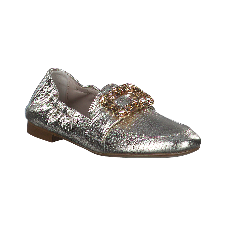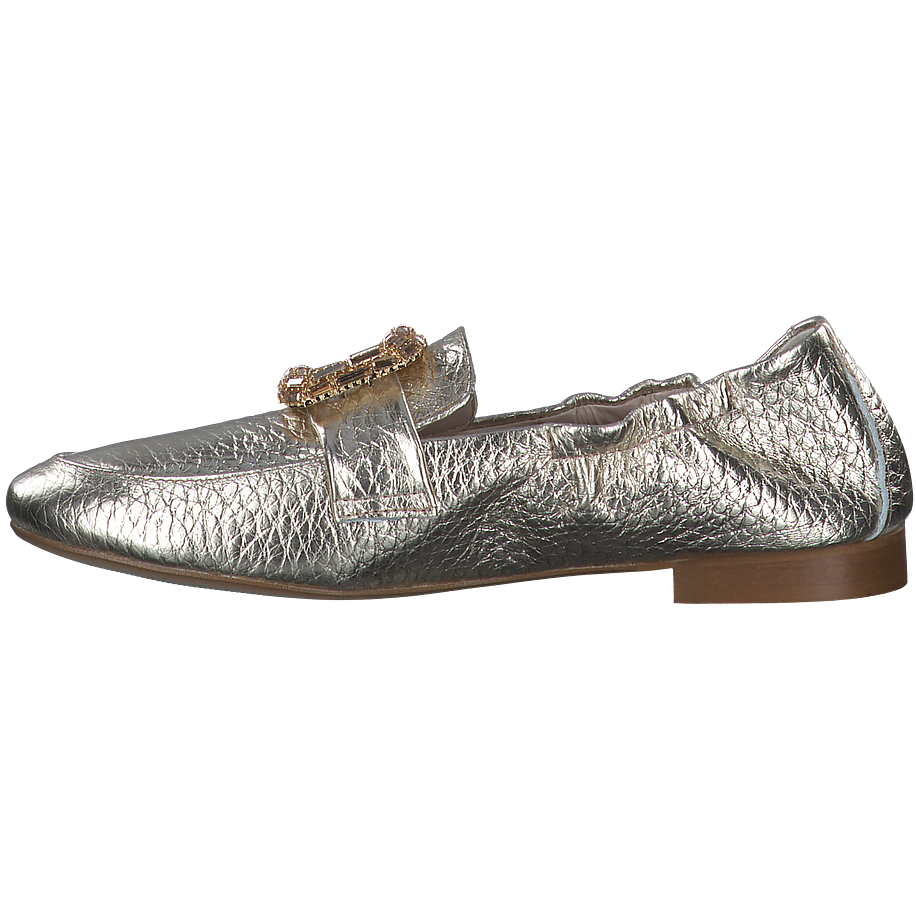 In edlem Gold präsentieren sich die Phillip Hardy Slipper für Damen als wahre Luxusstücke. Das schimmernde Leder und die elastische Fersenpartie garantieren nicht nur Eleganz, sondern auch höchsten Komfort beim Hineinschlüpfen. Die großen Schnallen, verziert mit Glitzer und Schmucksteinen, setzen diesen Slippern einen extravaganten Akzent. Mit ihrem traumhaften Design sind diese Slipper nicht nur ein modisches Statement, sondern auch ein Beweis für hochwertige Handwerkskunst und raffinierten Stil.