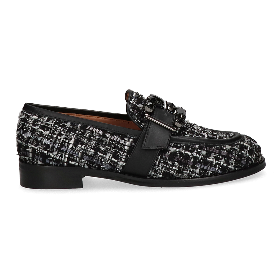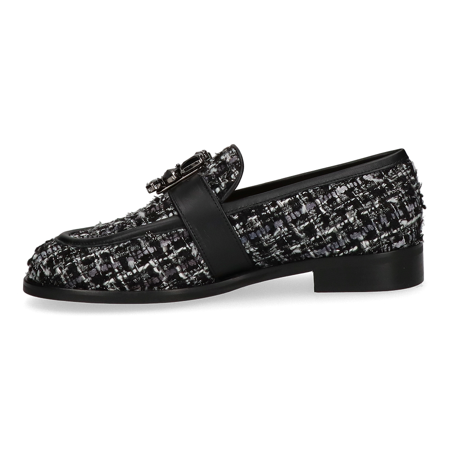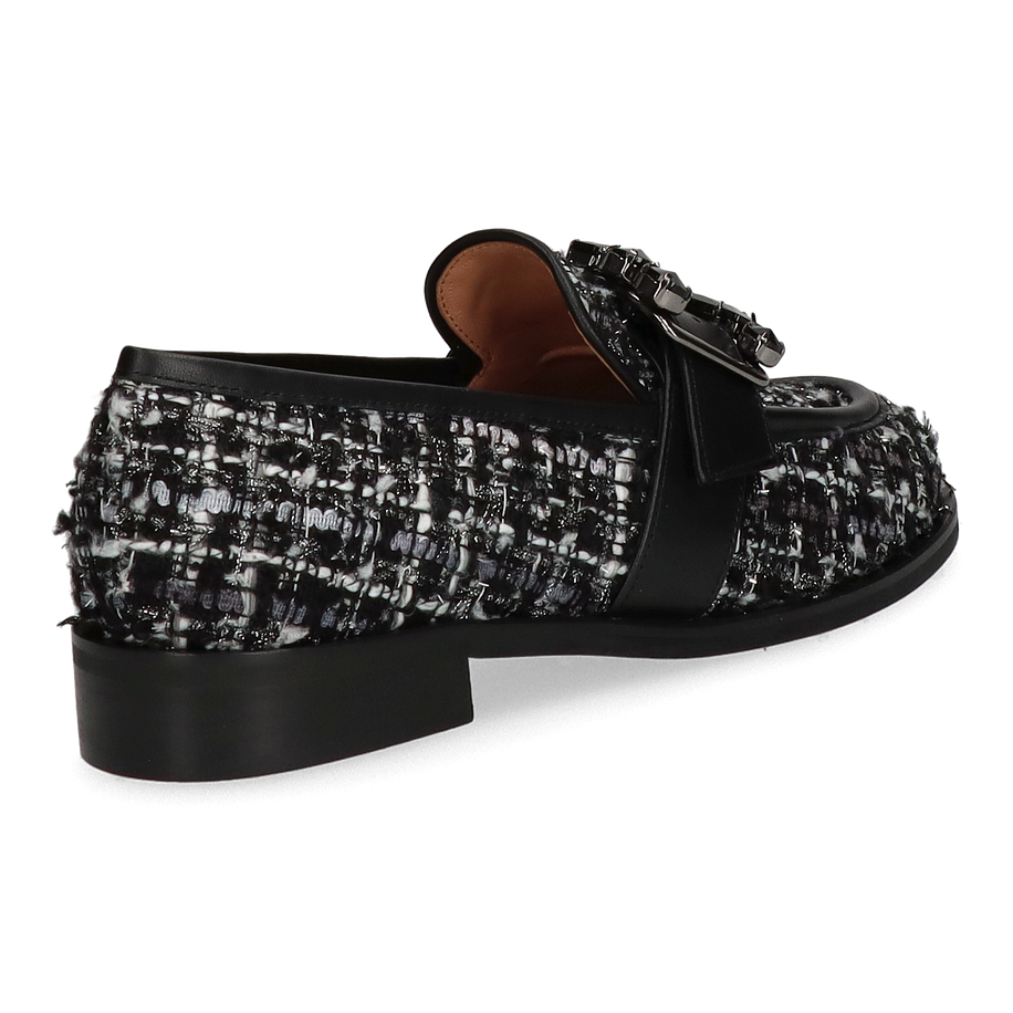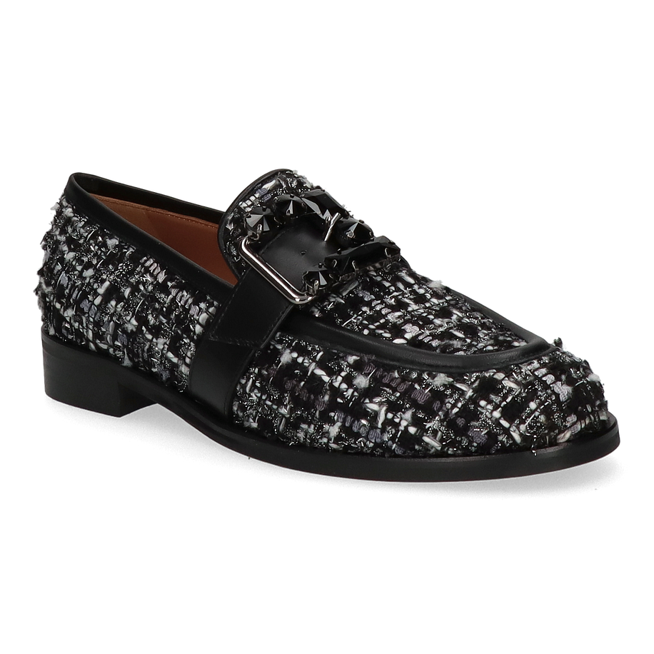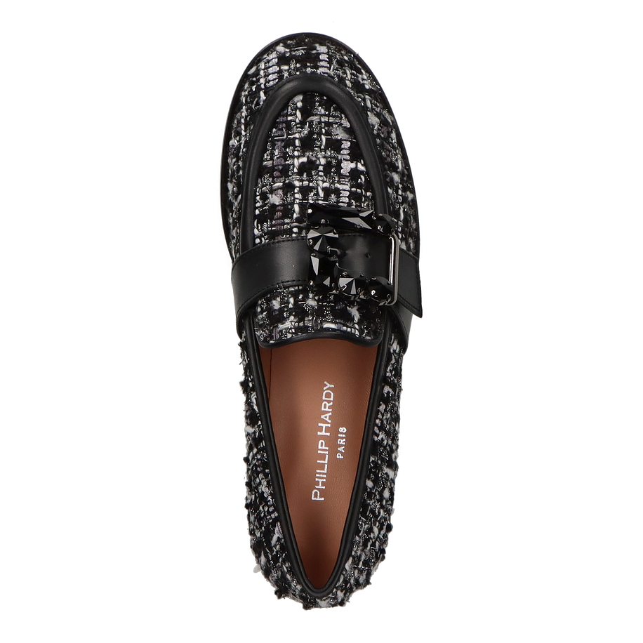 Entdecken Sie den eleganten Trotteur von Phillip Hardy für Damen. Diese stilvollen Schuhe in Schwarz-Weiß kombinieren hochwertiges Leder und Textil im Obermaterial, was ihnen eine einzigartige Bouclé-Optik verleiht. Ein dekorativer Riemen mit einer funkelnden Strassschnalle setzt einen glamourösen Akzent. Der 2 cm hohe Absatz sorgt für einen angenehmen Tragekomfort, während die Lederinnensohle und das Lederfutter für ein luxuriöses Gefühl sorgen. Die Gummisohle bietet zudem hervorragende Haltbarkeit und Rutschfestigkeit. Perfekt für anspruchsvolle Anlässe oder den täglichen Gebrauch, diese Trotteurs sind ein Must-Have für jede stilbewusste Frau.