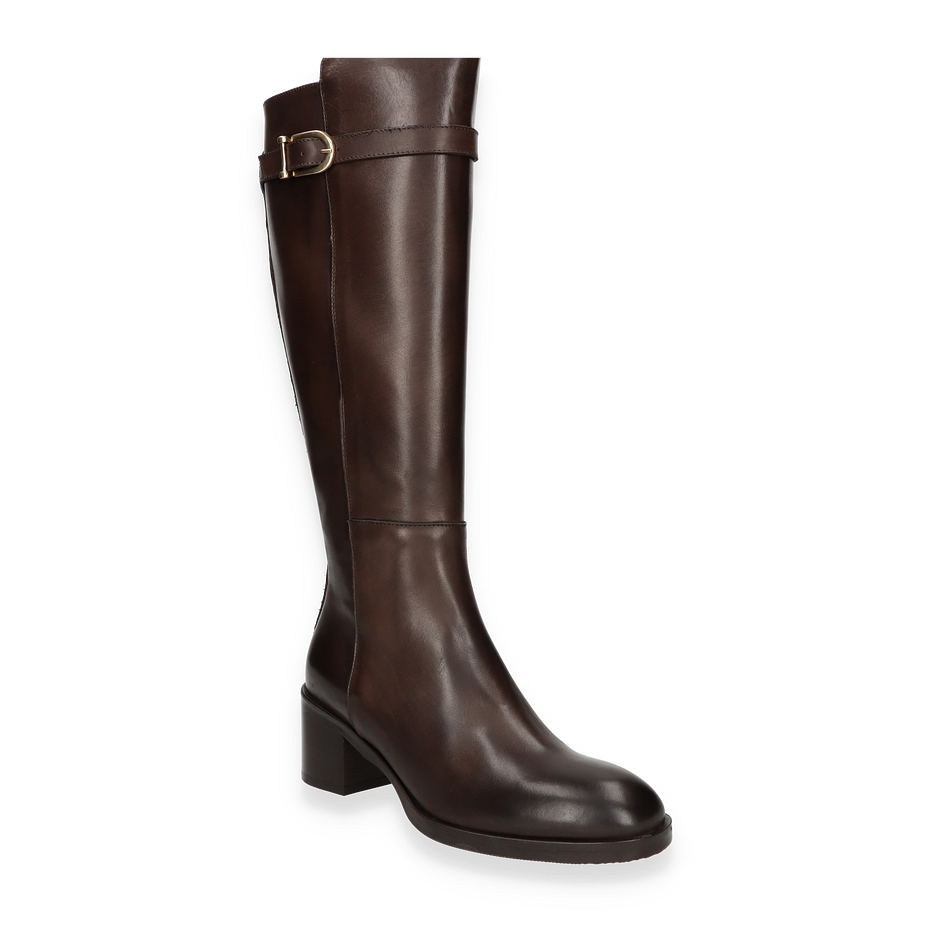 Entdecken Sie die eleganten Stiefel von Phillip Hardy für Damen, die in einem tiefen Dunkelbraun erstrahlen. Diese Stiefel zeichnen sich durch ihre zeitlose Silhouette und die hochwertige Verarbeitung aus. Der 6 cm hohe Absatz verleiht Ihnen eine anmutige Höhe, während der 37 cm hohe Schaft und die 30 cm breite Schaftweite für eine schmeichelhafte Passform sorgen. Das edle Design wird durch eine dezente Schnalle akzentuiert, die den klassischen Look unterstreicht.